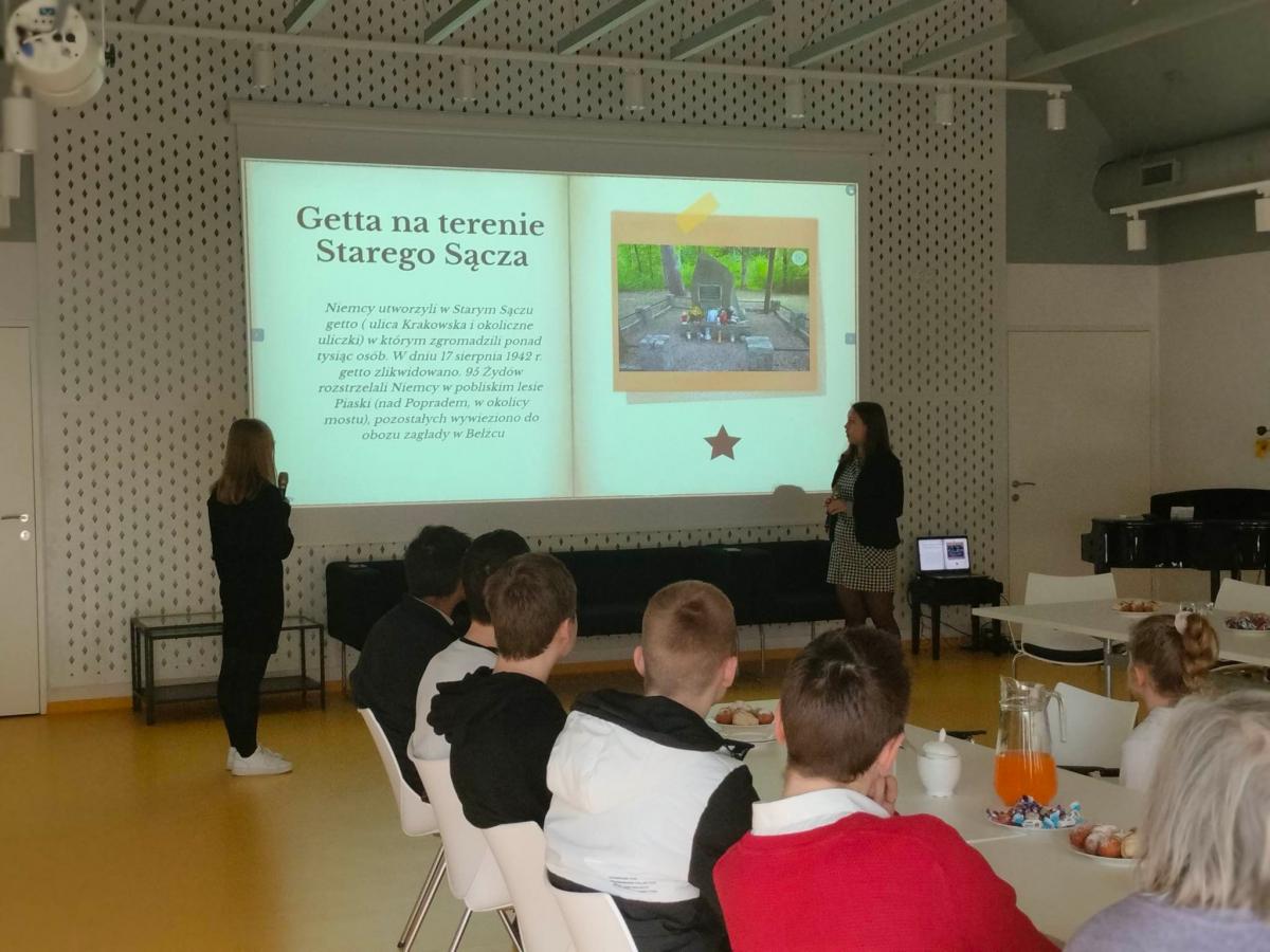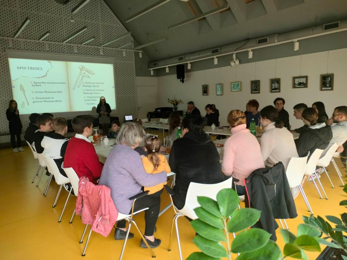 23 marca 2023 r. kandydatki do tegorocznej edycji Sejmu Dzieci i Młodzieży - Ilona Stawiarska i Klaudia Ogorzały z klasy 8a zorganizowały w Bibliotece Publicznej w Przysietnicy spotkanie na temat historii narodu żydowskiego w czasie II wojny światowej. Zadaniem organizatorów było dotrzeć do jak największej grupy odbiorców i przekazać im historię powstania w getcie Warszawskim. Uczestnicy spotkania mogli dowiedzieć się o metodach wyniszczania Żydów przez okupanta oraz o działających w tamtych czasach organizacjach przeciwko Niemcom. Pojawiły się również informacje o getcie w Starym Sączu i Nowym Sączu. Przybyli goście wykazali duże zainteresowanie prezentacją i wyrazili chęć wszelkiej pomocy w osiągnięciu celu, którym jest zakwalifikowanie się do dalszego etapu Konkursu.