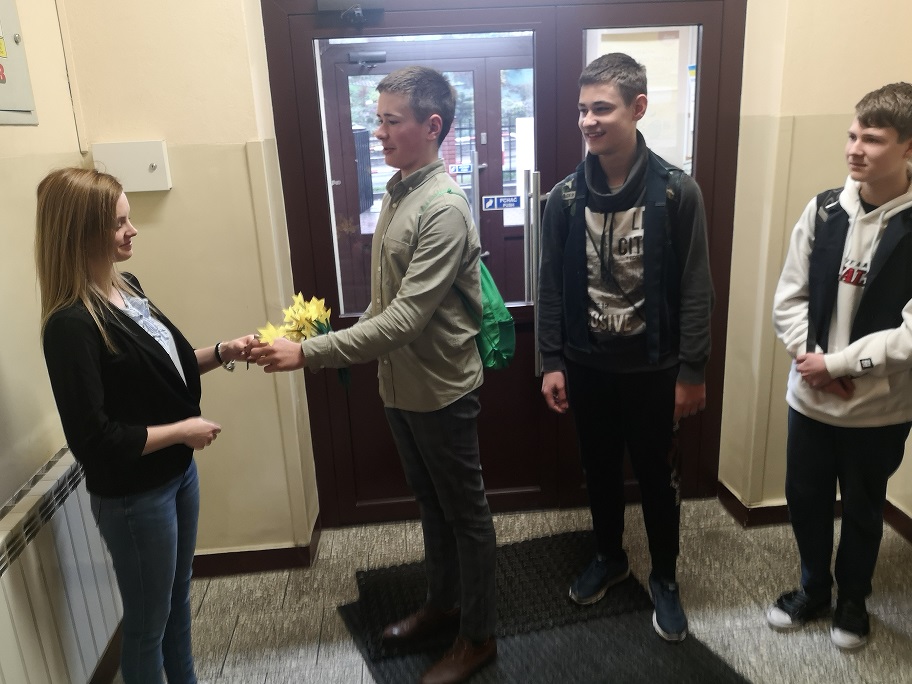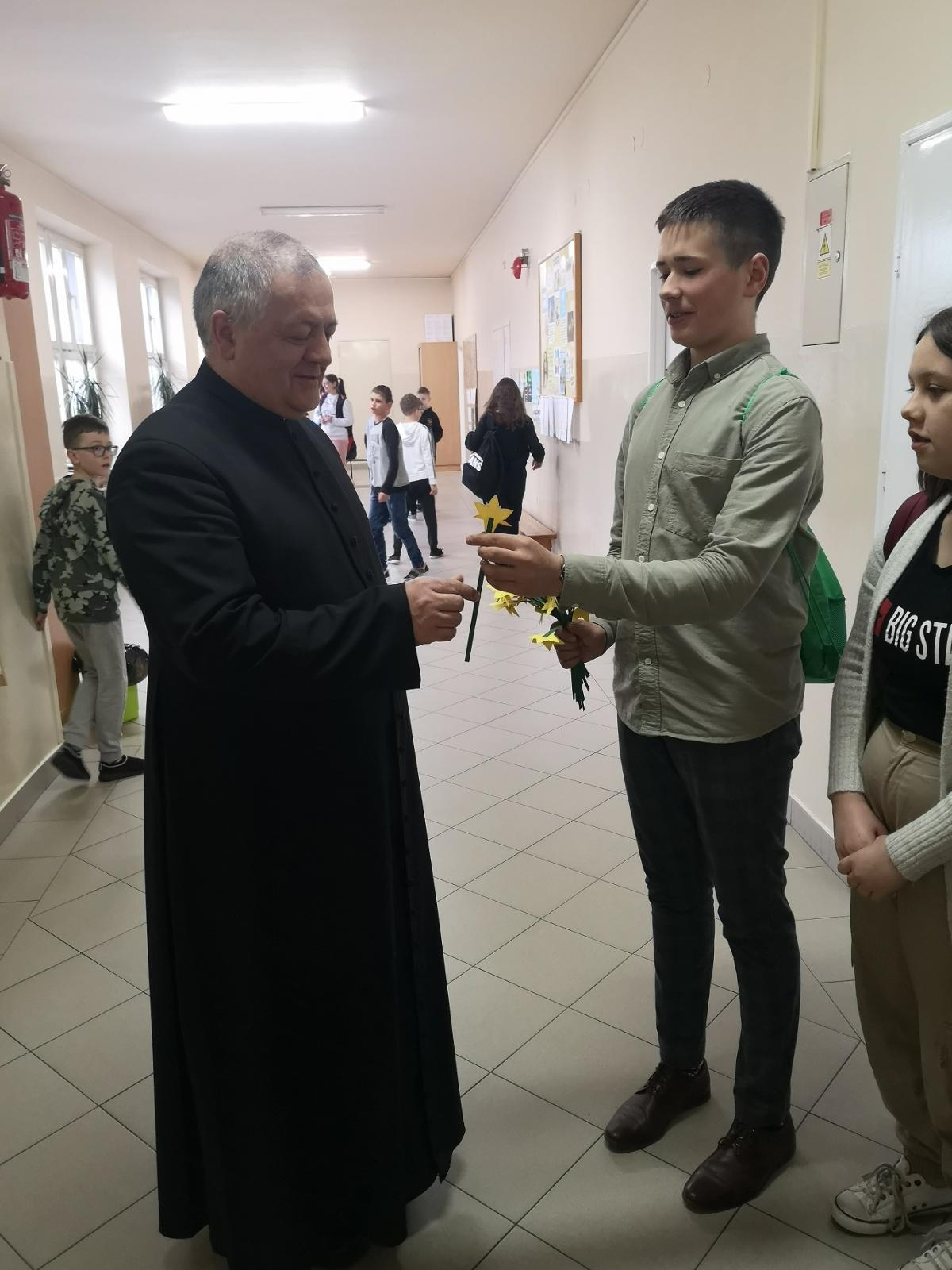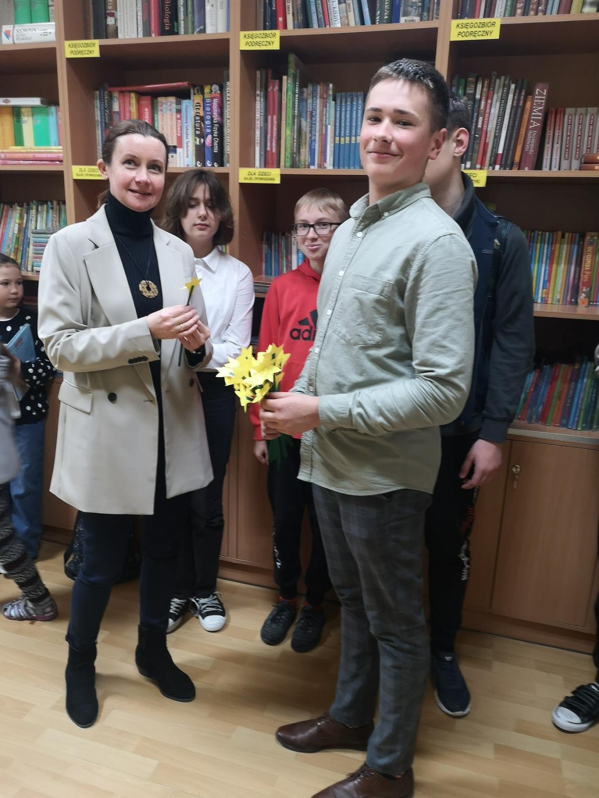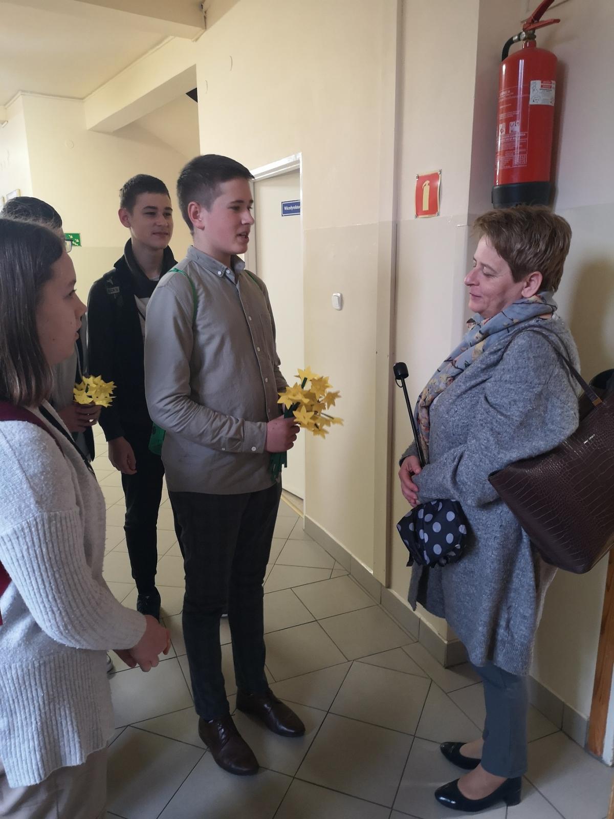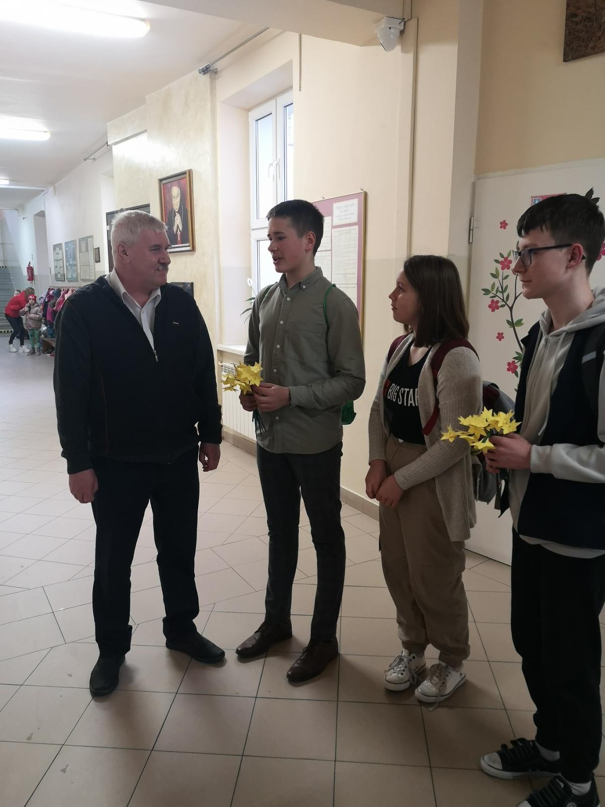 19 kwietnia 2023r. uczniowie klas ósmych wraz z wychowawcami wzięli udział w XI edycji akcji społeczno- edukacyjnej Żonkile . Młodzież wykonała papierowe kwiaty żonkili, które symbolizują ludność żydowską zamkniętą w gettcie warszawskim w 1941r. i rozdała je społeczności szkolnej. Przypięty żonkil 19 kwietnia oznacza, że w rocznicę wybuchu powstania w gettcie warszawskim Łączy Nas Pamięć o ważnych dla historii Polski wydarzeniach.. W ramach lekcji wychowawczych uczniowie obejrzeli animowaną wersję książki Hanny Krall „Zdążyć przed Panem Bogiem” i zapoznali się z materiałami edukacyjnymi przekazanymi przez Muzeum Polin.