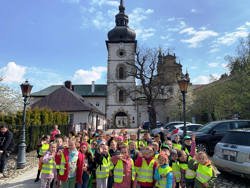 Po przedstawieniu wszyscy uczestnicy wycieczki udali się na spacer ulicami urokliwego Starego Sącza, a piękna, słoneczna pogoda zachęcała do aktywnego zwiedzania miasteczka z XIII w. Dzieci widziały Muzeum – Dom na Dołkach, Nowoczesne Centrum Kultury i Sztuki, Klasztor, Bramę Seklerską, Źródełko Św. Kingi, Stadion Sportowy, aż dotarły pod Ołtarz Papieski. Na miejscu podróżnicy zjedli II śniadanie i korzystali z gier i zabaw na świeżym powietrzu.