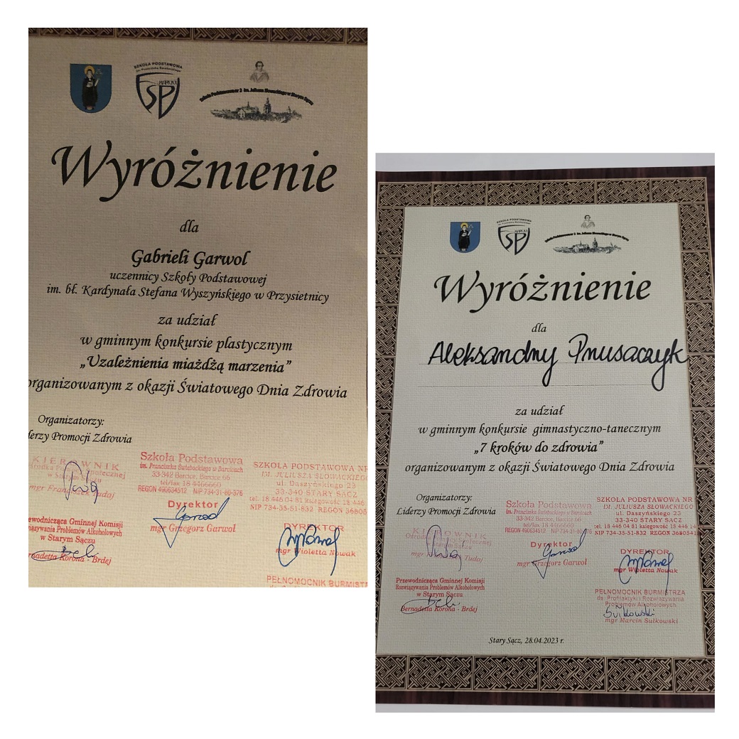 Tradycyjnie Szkoła Podstawowa w Barcicach i Szkoła Podstawowa nr 2 w Starym Sączu byli organizatorami projektu w ramach obchodów Światowego Dnia Zdrowia.  Wszystkie szkoły podstawowe z Gminy Stary Sącz brały udział w różnych zadaniach i dyscyplinach sportowych dotyczących zdrowego stylu życia. Wykonywane zadania były odpowiednio punktowane. Zakończenie projektu, uroczysta Gala  odbyła się 28 kwietnia 2023 r. w Centrum Kultury i Sztuki  Sokół w Starym Sączu. Uczniowie zaprezentowali swoje umiejętności wokalne i taneczne. Nagrodzone zostały dzieci biorące udział w konkursach plastycznych i literackich. Naszą szkołę na tej uroczystości reprezentowali: Zuzanna Borzęcka, Karolina Dudek, Magdalena Tokarczyk, Gabriela Garwol, Aleksandra Prusaczyk, Gabriela Tokarczyk, Wojciech Wąchała, Martyna Tokarczyk. Gratulujemy!