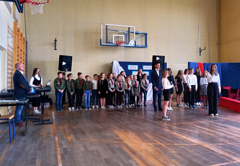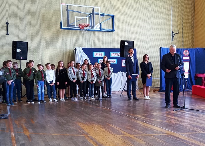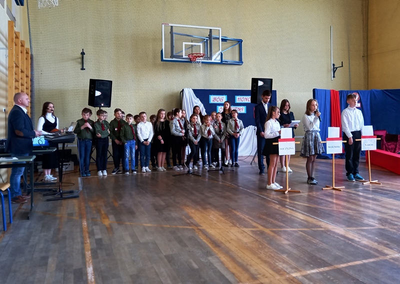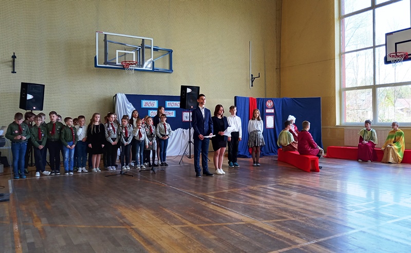 Uczniowie naszej szkoły uczestniczyli w uroczystym Sejmiku Uczniowskim, który poświęcony był rocznicy uchwalenia Konstytucji 3 maja. Montaż słowno – muzyczny poświęcony został okolicznościom uchwalenia tejże konstytucji. Uczniowie dowiedzieli się w jakich okolicznościach została uchwalona pierwsza w Europie konstytucja. Ponadto poznali sytuację polityczną w kraju, który potrzebował reform celem jego wzmocnienia. Tło historyczne tego czasu przybliżył zgromadzonym fragment nagranego słuchowiska. Punktem finalnym Sejmiku Uczniowskiego była scenka z udziałem uczniów, którzy wcielili się w postacie posłów wiwatujących na cześć króla Stanisława Augusta Poniatowskiego, po odczytaniu przez niego fragmentu napisanej konstytucji. Sejmikowi towarzyszyły słowa: Bóg - Honor - Ojczyzna, których odzwierciedleniem były odpowiednio dobrane wiersze, piosenki oraz treści. Wolność - Ojczyzna - Naród – to słowa, które pojawiły się na transparentach, a których to znaczenie wyjaśnili wnoszący jej uczniowie. Wszyscy musimy pamiętać, iż historia żyje w narodzie, dopóki naród o niej pamięta.