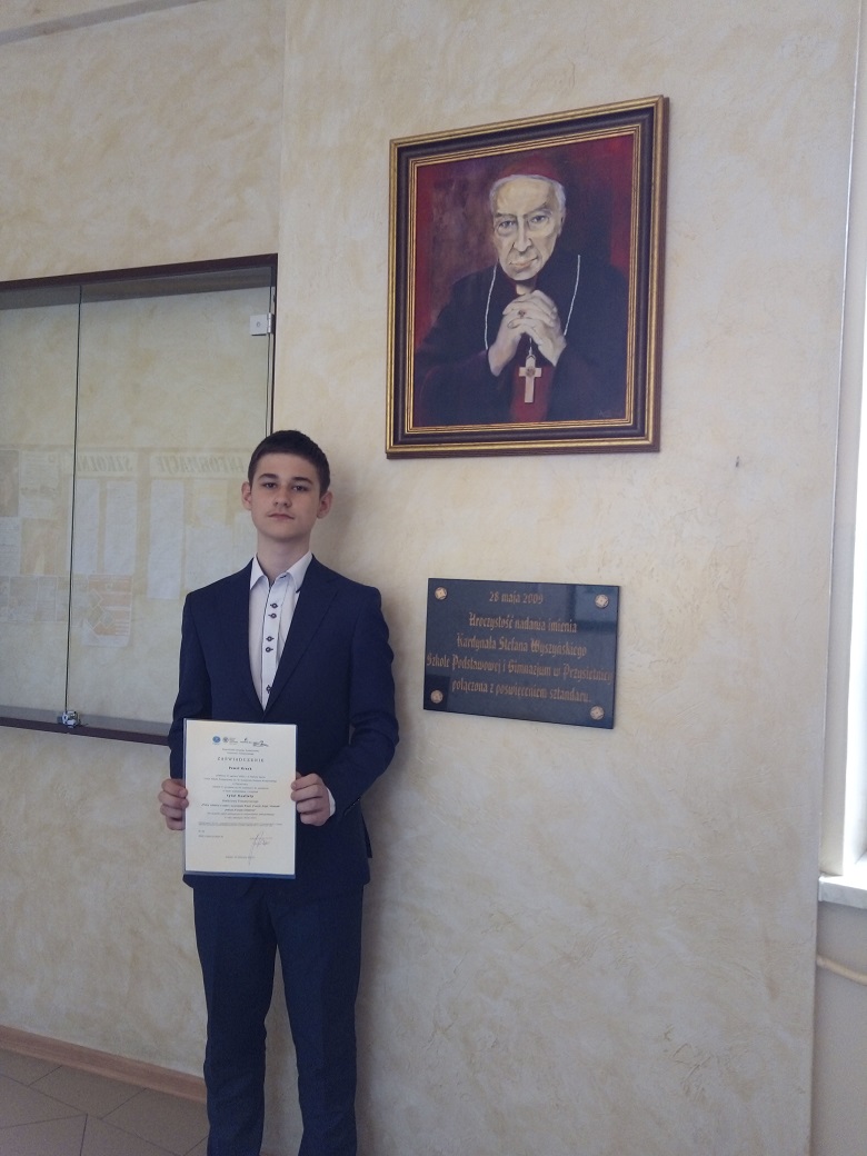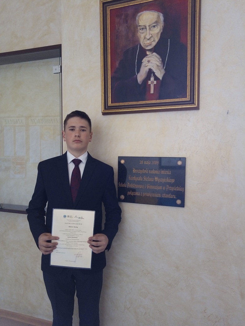 „Polscy żołnierze w walce o wyzwolenie Włoch, Francji, Belgii i Holandii podczas II wojny światowej” to temat tegorocznego konkursu, w którym udział wzięli uczniowie Szkoły Podstawowej im. bł. Kard. S. Wyszyńskiego w Przysietnicy. Z siedmioosobowej grupy uczestników zróżnicowanej wiekowo, aż trzech uczniów z klasy ósmej uzyskało tytuł finalisty konkursu. Była to ciężka praca, zarówno dla uczniów jaki i nauczyciela –opiekuna naukowego. Uczniowie musieli zgłębić, a przede wszystkim zdobyć wiedzę z zakresu obszernej tematyki, tyko częściowo realizowanej z podstawy programowej na historii. Po dwumiesięcznych przygotowaniach, uczniowie zmagali się z różnorodnością zadań, podczas testu otwarto - zamkniętego na etapie szkolnym. Po zakwalifikowaniu się do etapu rejonowego uczniowie przystąpili do pisania pracy, chronologicznie umieszczonej w czasach II wojny światowej. W czasie zimowej przerwy świątecznej, kiedy inni cieszyli się urokami dni wolnych uczniowie pisali prace i uczestniczyli w konsultacjach prowadzonych przez nauczyciela przedmiotu - Panią mgr Elżbietę Kosiba. Stosując się do uwag i wskazówek opiekuna naukowego napisali prace, które oceniane były przez dwie niezależne od siebie komisje konkursowe - w Nowym Sączu i Krakowie. Prace uczniów zostały ocenione wysoko i tym samym uczniowie zakwalifikowali się do etapu wojewódzkiego, gdzie przed Wojewódzką Komisją Konkursową prezentowali ustnie treść swoich prac i odpowiadali na pytania zadawane im przez członków komisji. Hubert Kulig prezentował pracę „2 Korpus Polski- armia generała Władysława Andersa”, Paweł Krzak „Generał Władysław Anders-zdobywca Monte Cassino”, a Paweł Lorek „Generał Stanisław Maczek-zwycięzca spod Falaise”. Cała trójka uzyskała podczas etapu wojewódzkiego wysokie noty punktowe, co dało im zwycięstwo w konkursie i zdobycie tytułu finalisty.