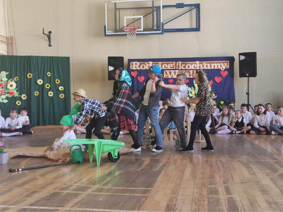Mama i Tata to najważniejsze i pierwsze słowa, które kojarzą się nam z bezwarunkową miłoścą, dobocią, ciepłem rodzinnego domu. Dla każdego człowieka rodzice, to najważniejsze osoby w jego życiu. Należy więc dbać, troszczyć się i pielęgnować więź która powstaje między dzieckiem a rodzicami. Dlatego też, 31 maja 2023 roku, do naszej szkoły zaprosiliśmy rodziców na uroczystości z okazji Dnia Mamy i Taty.Z tej okazji dzieci wraz z wychowawcami przygotowały w tajemnicy przedstawienie ,, Rzepka ,, Juliana Tuwima. Było mnóstwo życzeń i wzruszających chwil. Rodzice otrzymali od swoich pociech drobne upominki i laurki. Dzieńten z pewnością zapadnie nam długo w pamięci i sercach.