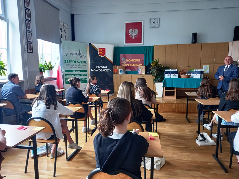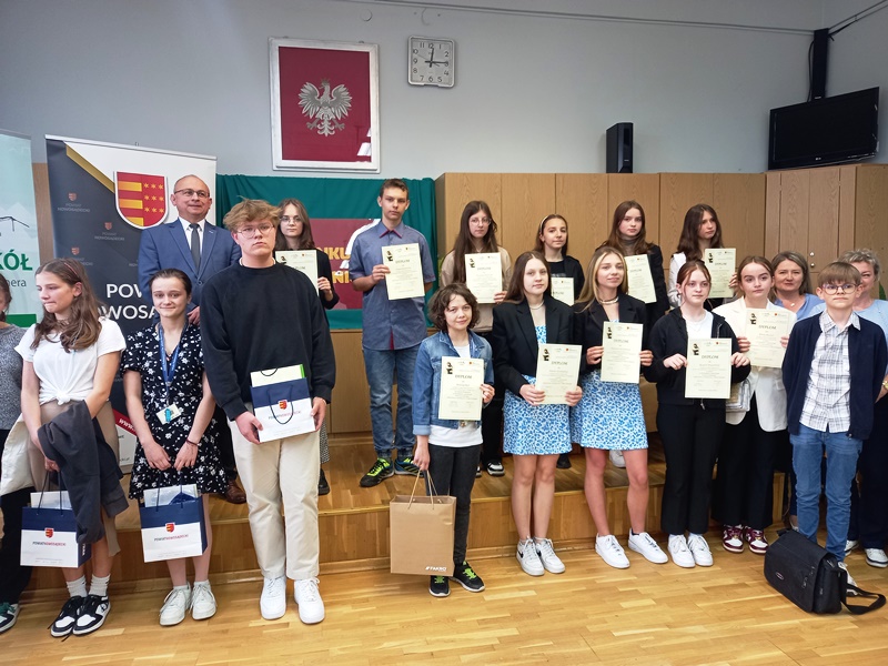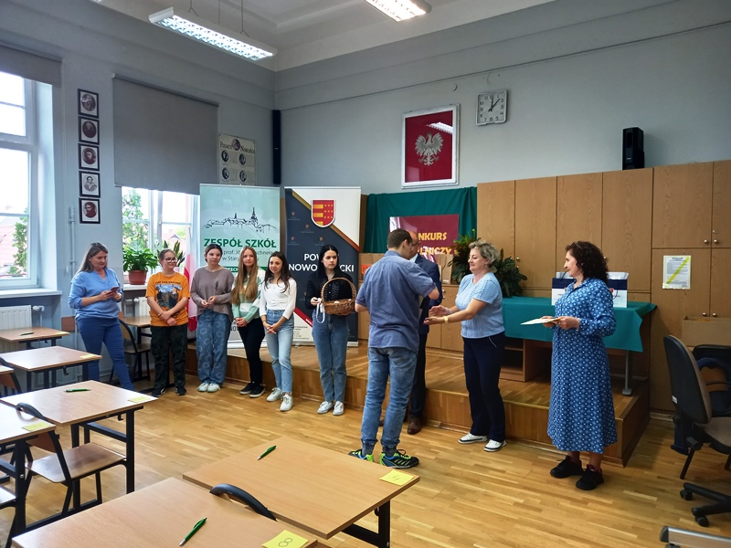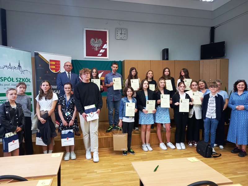 Po zmaganiach konkursowych blisko dwudziestu uczniów, w których należało się wykazać szczegółową i obszerną wiedzą dotyczącą powieści, Eryk znalazł się w gronie wyróżnionych. Nagrody i gratulacje odbierał z rąk dyrektora Zespołu Szkół p. Grzegorza Skalskiego.