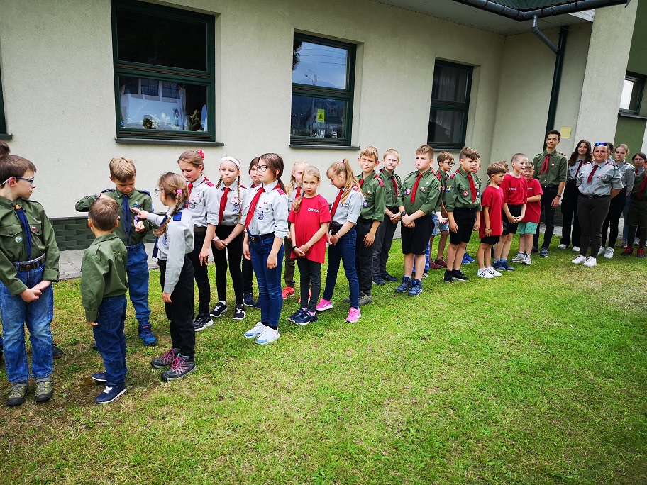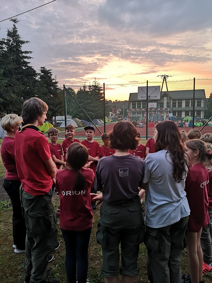 W dniach 17.06. – 18.06.2023r. zuchy i harcerze z 1NDMP Orionwraz z opiekunami dh. B. Stelmach, dh. M. Jarząb, dh. U. Kulig brali udział w XI Poszukiwaniach Pierścienia Świętej Kingi- grze terenowej i biwaku pod namiotami w Gołkowicach. Motywem przewodnim tegorocznej edycji była wyprawa archeologiczna w realiach czerwca 2014r. Każdy patrol wcielał się w grupę archeologów, którzy podejmują wyzwanie odnalezienia średniowiecznej lokacji wsi oraz rozwiązania zagadki, jaką skrywa legenda o pierścieniu Świętej Kingi. Licznie zgromadzona społeczność Nowosądeckiego Hufca ZHP zmierzyła się z wieloma zadaniami opartymi o fakty historyczne. Musieli między innymi wykonać strzelanie do celu, zastosować poznane techniki harcerskie w przygotowaniu obozowiska i odszukiwać informacje z lokalizacji satelitarnej. Zuchy musiały wykonać prace wykopaliskowe na wyznaczonych stanowiskach oraz odnaleźć tajemniczy pierścień. Wszyscy musieli pokonać wielokilometrowy dystans między Gołkowicami Górnymi a Mostkami. Mimo zmęczenia każdy chętnie brał udział w wieczornych zajęciach programowych, wspólnie tańcząc i śpiewając przy akompaniamencie gitar. W późnych godzinach nocnych obozowicze udali się do namiotów na odpoczynek i długie nocne rozmowy. Warto zauważyć że dla wielu zuchów była to pierwsza taka przygoda z namiotami . W niedzielę po wspólnej mszy w miejscowym kościele i apelu końcowym wszyscy zmęczeni, ale zadowoleni wrócili do domów. Taka wspaniała przygoda na zawsze zostanie w pamięci naszych zuchów i harcerzy.