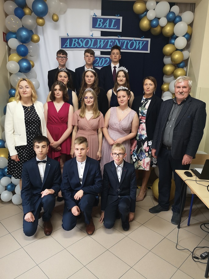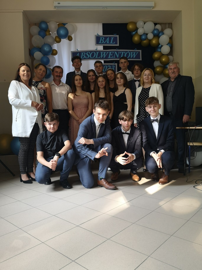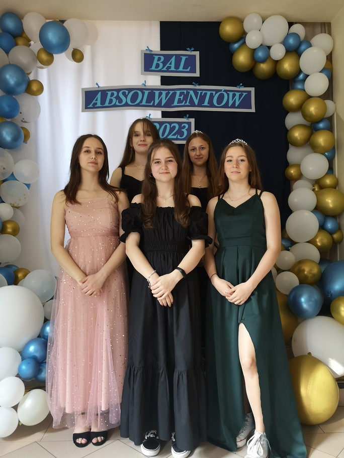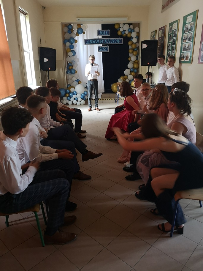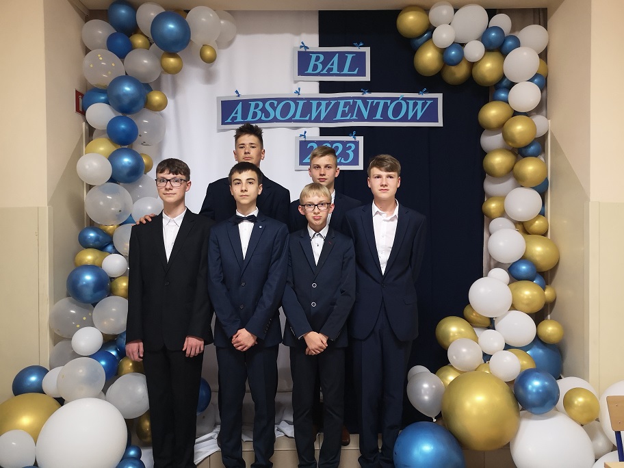 21 czerwca 2023r. uczniowie klas 8a i 8b świętowali ukończenie szkoły na Balu Absolwentów. Wszyscy odświętnie ubrani rozpoczęli uroczystość od odtańczenia poloneza w obecności wychowawców: Małgorzaty Jarząb, Piotra Jarząb i Karoliny Bodziony oraz dyrekcji: Aleksandra Łukasika i Anny Golonki. Uczniowie przepięknie i z przejęciem wykonali wspaniały układ taneczny. Następnie rozpoczął się uroczysty obiad, po którym absolwenci ruszyli tłumnie do zabawy. W przerwach wszyscy chętnie uczestniczyli w ciekawych zabawach i konkursach przygotowanych przez ubiegłorocznego absolwenta - Filipa. Zabawa we wspaniałej atmosferze trwała do późnych godzin wieczornych. Bal absolwentów rocznika 2023 był niezwykle udany i zostanie w pamięci uczestników na długie lata.