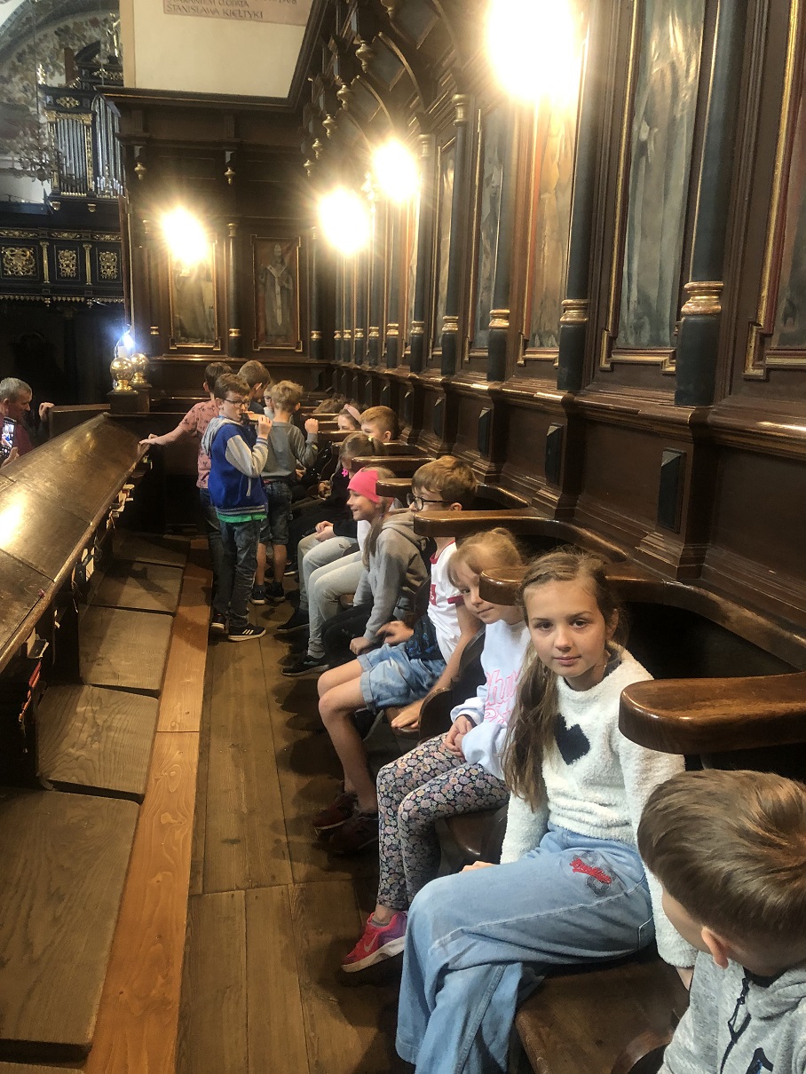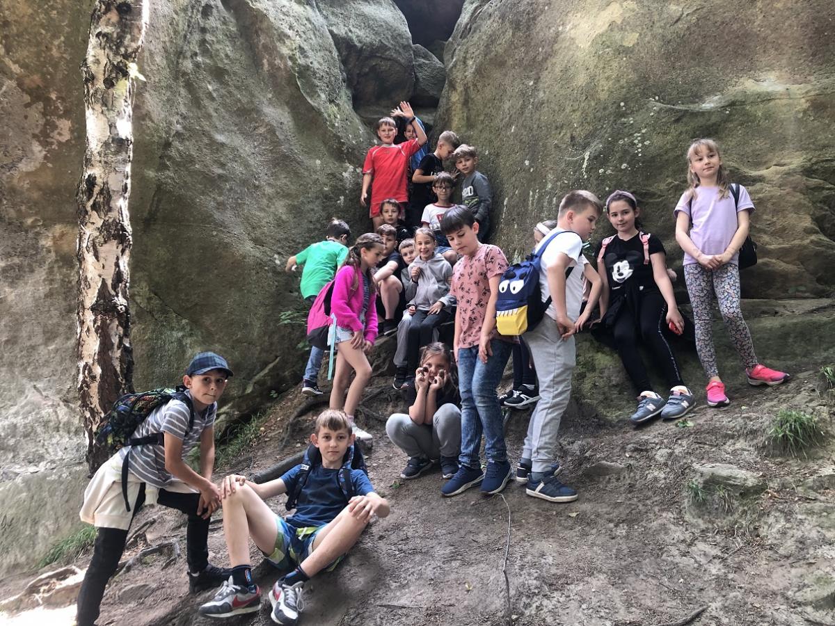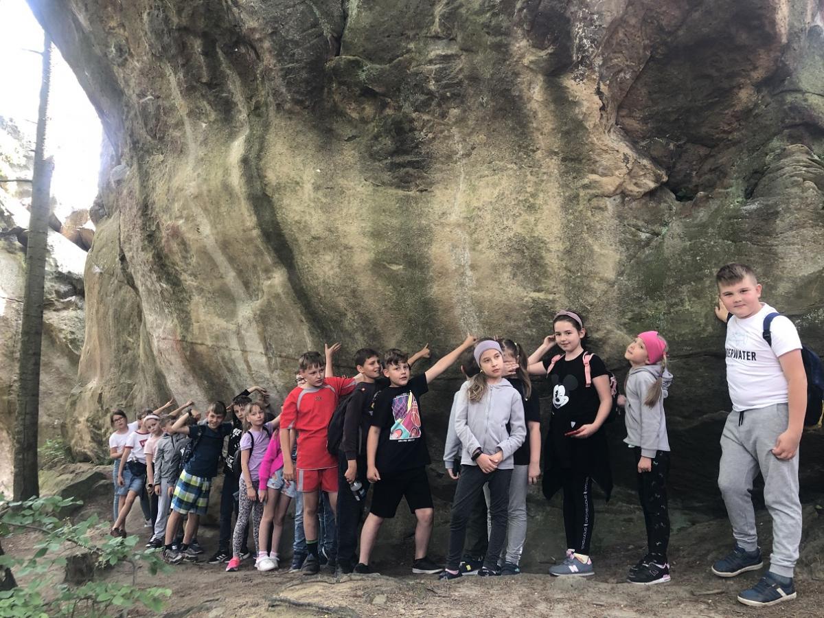 16 czerwca 2023 r. uczniowie klasy III byli na jednodniowej wycieczce w Szczyrzycu. Pierwszym miejscem zwiedzania był Klasztor Cystersów. Spotkaliśmy się tam z Ojcem Ludwikiem. W Muzeum Klasztornym dzieci poznały historię klasztoru, podziwiały pamiątki historyczne. Ogromne wrażenie na dzieciach zrobił przepiękny kościół. Następnym miejscem był Diabli Kamień. Z kamieniem związana jest legenda, według której diabeł nie mogąc ścierpieć istniejącego w Szczyrzycu klasztoru nawracającego ludzi od grzechu, porwał wielki kamień, by go zrzucić na klasztor. Jednak modlitwy zakonników i dźwięk bijących na Anioł Pański dzwonów klasztoru sprawiły, że diabeł stracił moc. Nie mogąc unieść kamienia, upuścił go w lesie, 3 km przed klasztorem. Na ścianach kamienia można dostrzec pięć wgłębień od palców diabła. Ostatnim wycieczkowym miejscem była Wioska Indiańska. Dzieci zboczyły naturalnej wielkości, malowane, w pełni wyposażone tipi, ogromny namiot zwany tio-tipi, zdolny pomieścić nawet 50 osób, rękodzieła Indian mieszkających na preriach - wierne repliki strojów indiańskich sprzed 200 lat, wykonane z tysięcy koralikówkoszule wojenne, tomahawki, torby z surowej skóry... i wiele, wiele inny rzeczy związanych z życiem Indian. Na zakończenie odbyły się gry i zabawy oraz strzelanie z łuku do celu. Wycieczka była bardzo udana. Dzieci wróciły zadowolone i pełne wrażeń.