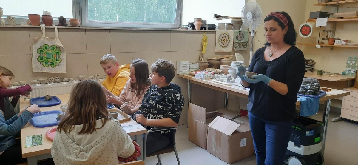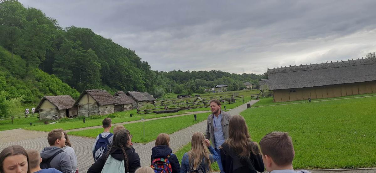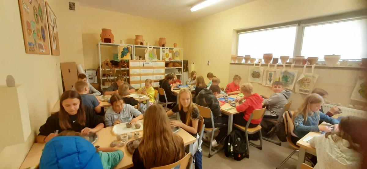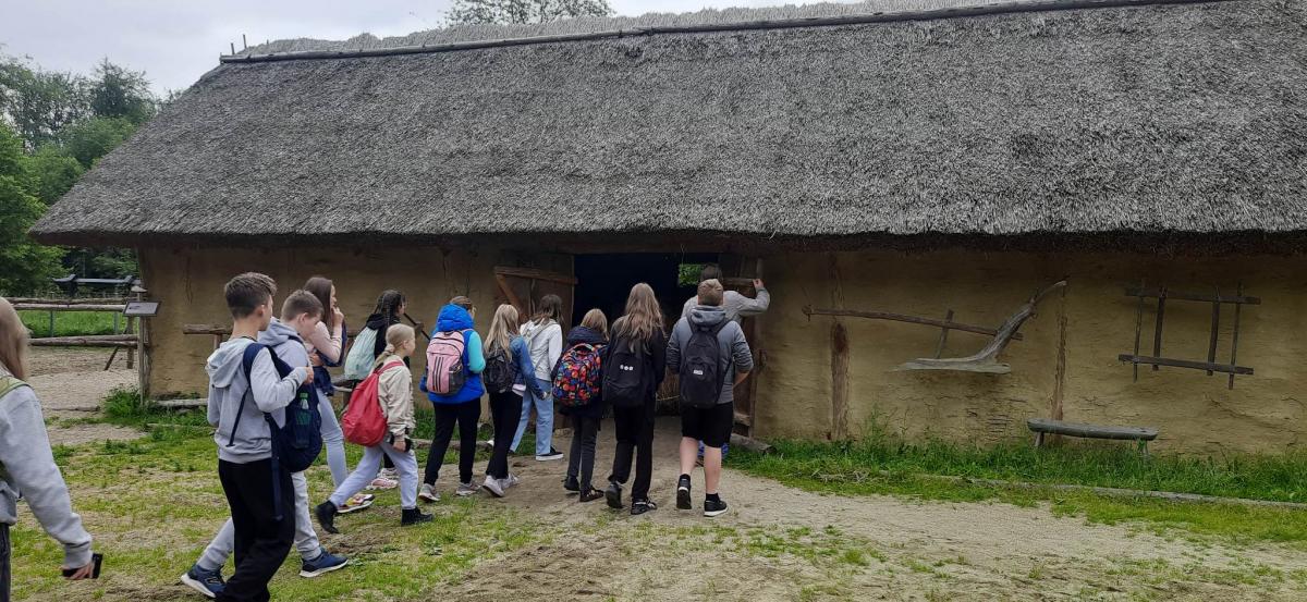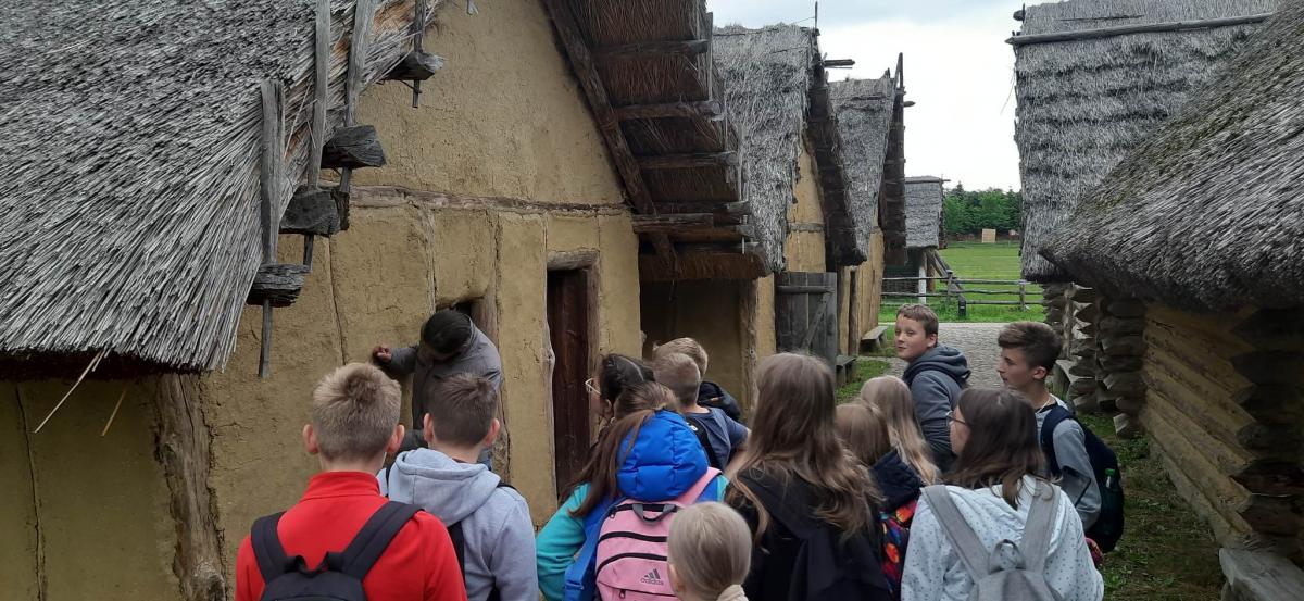 Następnie udaliśmy się do Karpackiej Troi w Trzcinicy. Odkryliśmy, że jest to połączenie tradycyjnej formy skansenu oraz nowoczesnej placówki muzealnej. Cały kompleks składa się z terenu grodziska oraz parku archeologicznego leżącego u jego podnóża. Na grodzisku zrekonstruowanych zostało ponad 150 m wałów obronnych, 2 bramy prowadzące do grodu (z epoki brązu i wczesnego średniowiecza) oraz 6 chat, do których mogliśmy wejść. Na terenie parku archeologicznego zlokalizowane są rekonstrukcje wiosek: otomańskiej z początków epoki brązu oraz słowiańskiej z wczesnego średniowiecza. Obejrzeliśmy również film dotyczący historii powstania Karpackiej Troi. Ponadto, wzięliśmy udział w warsztatach ceramicznych. Pani, prowadząca warsztaty, przedstawiła nam techniki lepienia i zdobienia naczyń oraz sposoby wytwarzania ceramiki przez ludność kultury Otomani- Füzesabony oraz Słowian. Każdy z nas ulepił z gliny 3 rzeczy, które mogliśmy zabrać ze sobą do domu na pamiątkę!
