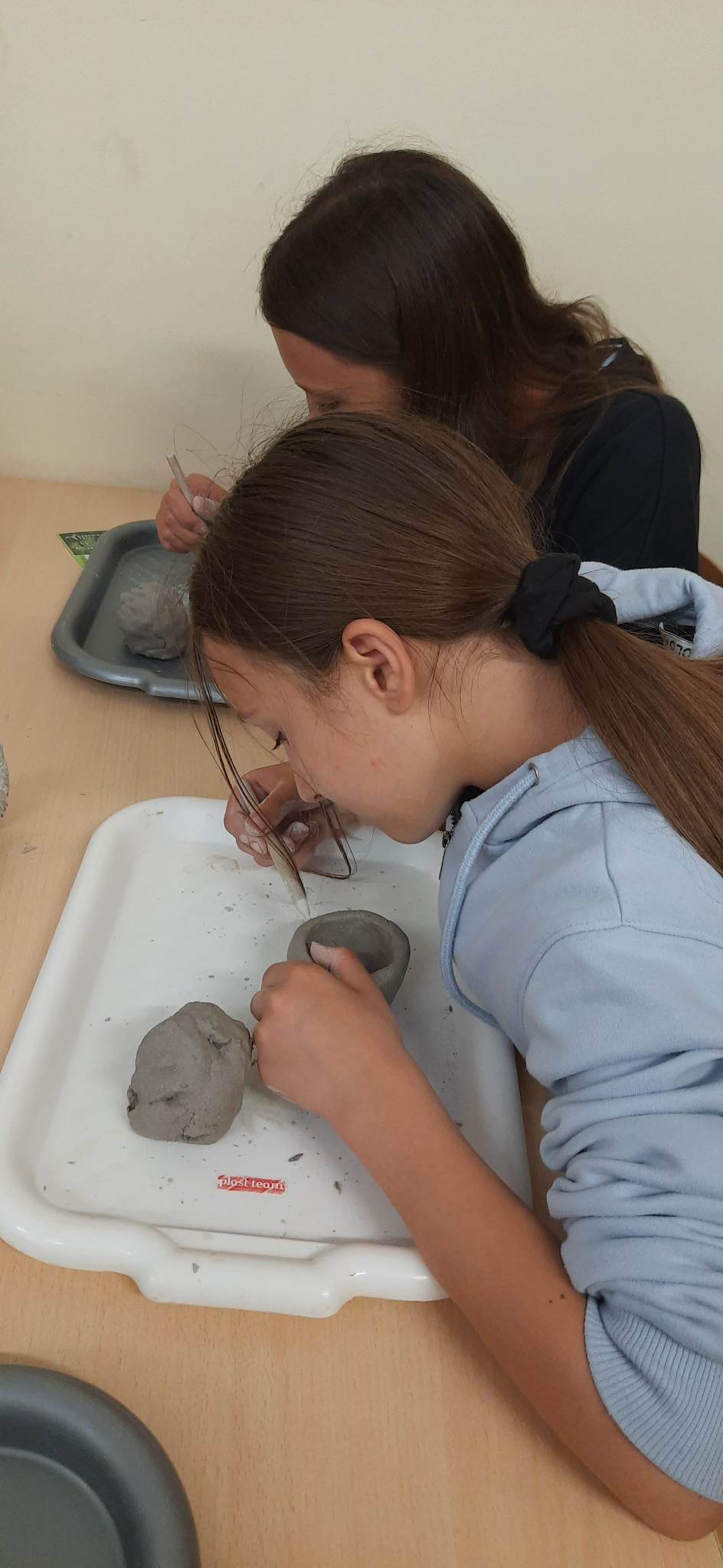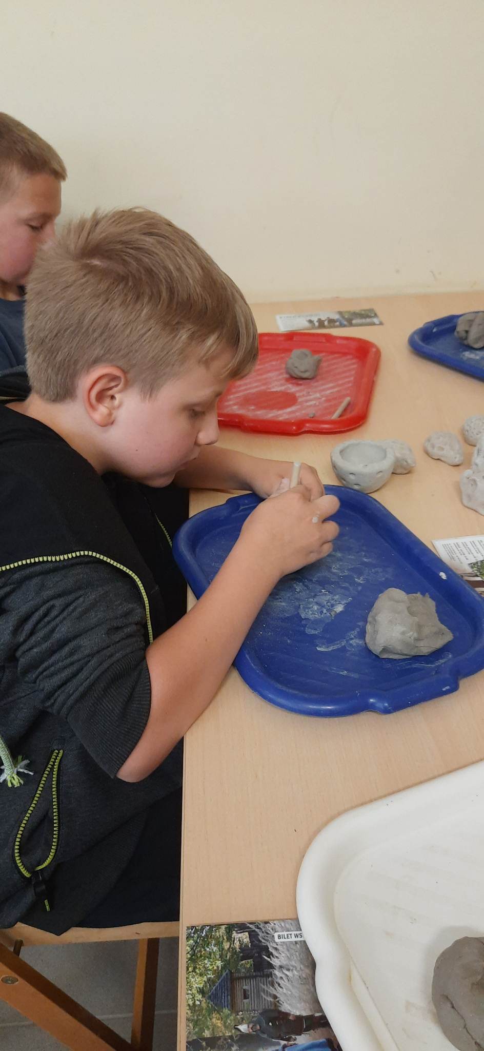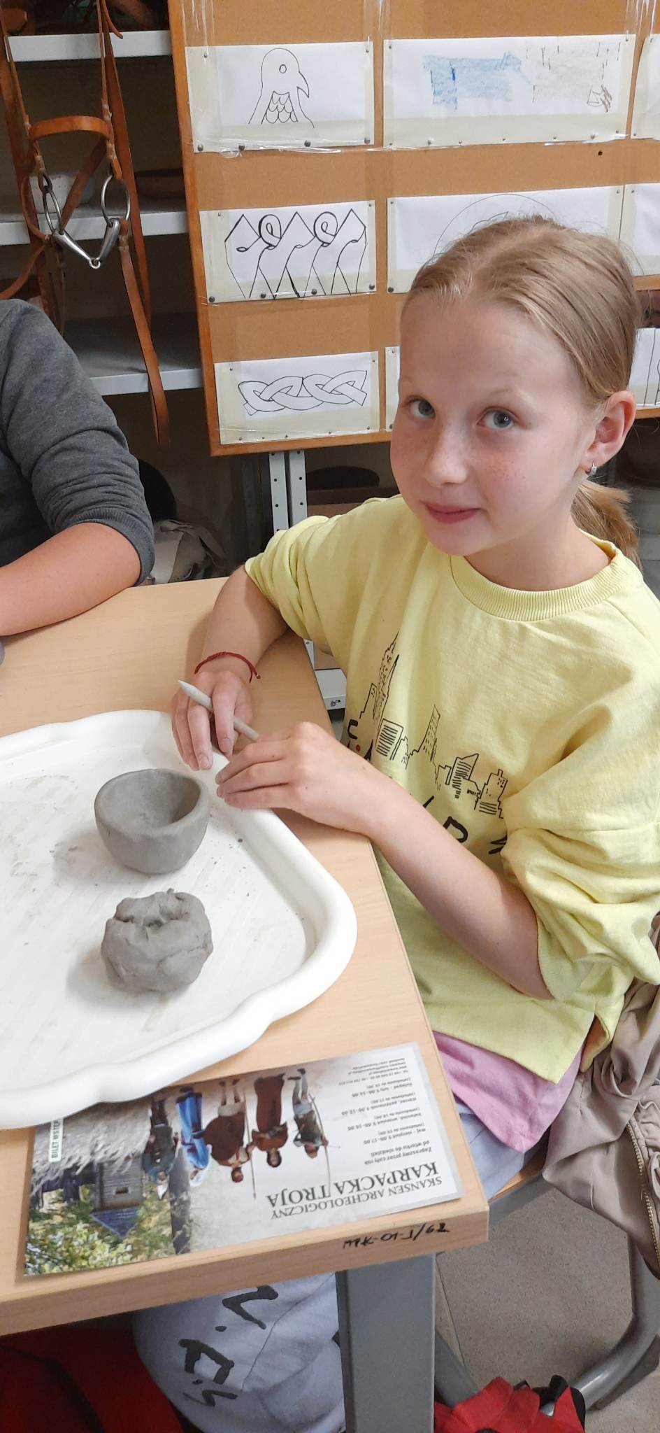 Następnie udaliśmy się do Karpackiej Troi w Trzcinicy. Odkryliśmy, że jest to połączenie tradycyjnej formy skansenu oraz nowoczesnej placówki muzealnej. Cały kompleks składa się z terenu grodziska oraz parku archeologicznego leżącego u jego podnóża. Na grodzisku zrekonstruowanych zostało ponad 150 m wałów obronnych, 2 bramy prowadzące do grodu (z epoki brązu i wczesnego średniowiecza) oraz 6 chat, do których mogliśmy wejść. Na terenie parku archeologicznego zlokalizowane są rekonstrukcje wiosek: otomańskiej z początków epoki brązu oraz słowiańskiej z wczesnego średniowiecza. Obejrzeliśmy również film dotyczący historii powstania Karpackiej Troi. Ponadto, wzięliśmy udział w warsztatach ceramicznych. Pani, prowadząca warsztaty, przedstawiła nam techniki lepienia i zdobienia naczyń oraz sposoby wytwarzania ceramiki przez ludność kultury Otomani- Füzesabony oraz Słowian. Każdy z nas ulepił z gliny 3 rzeczy, które mogliśmy zabrać ze sobą do domu na pamiątkę!