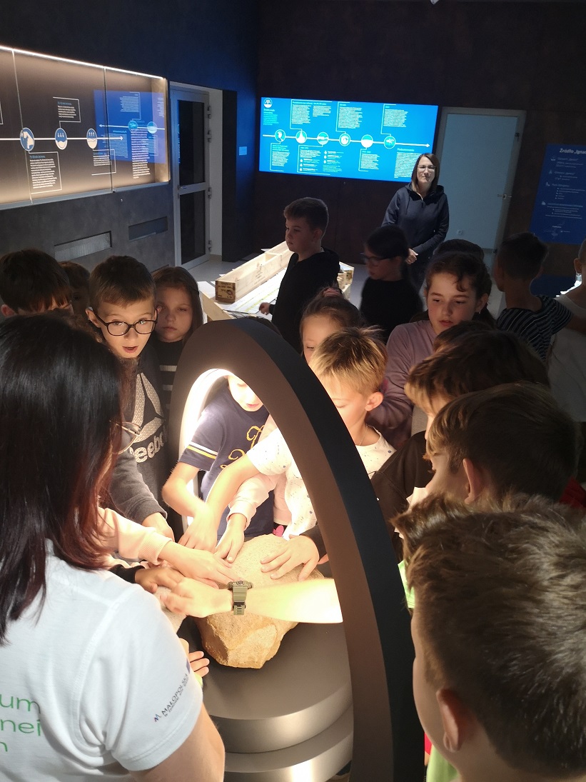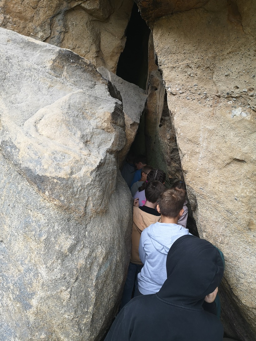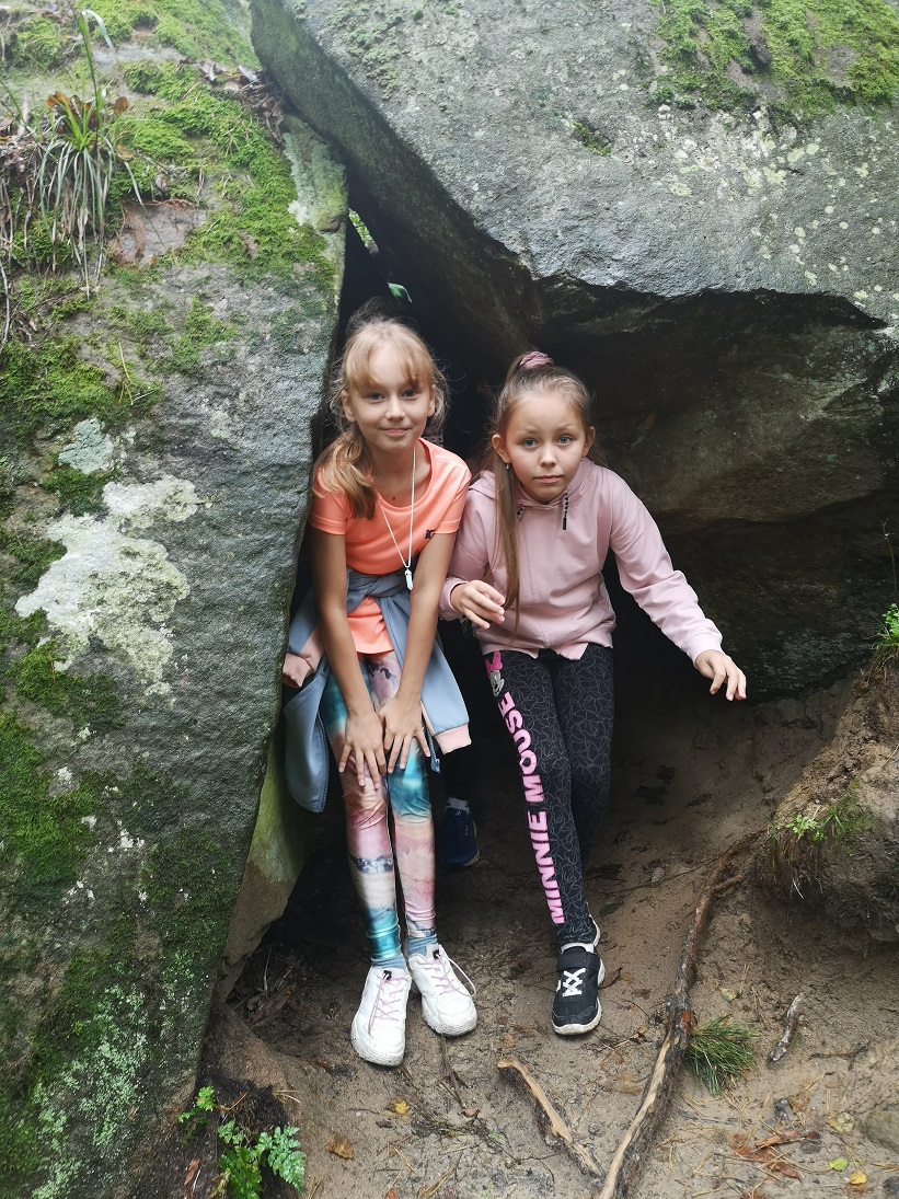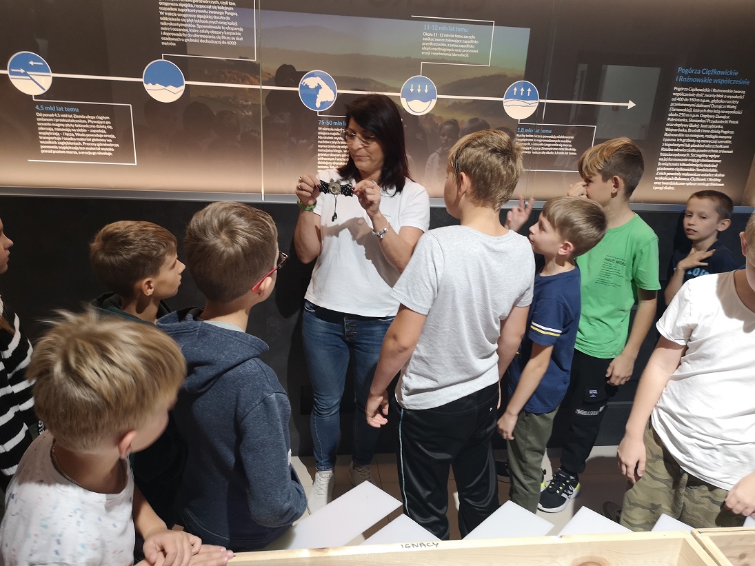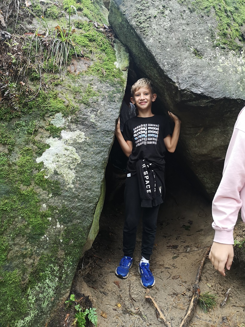 25 września 2023r. klasa IV wzięła udział w wycieczce klasowej do Ciężkowic. Pierwszym punktem wyjazdu były warsztaty w Małopolskim Centrum Edukacji Przyrodniczej, w którym uczniowie mieli okazję doświadczalnie poznać niektóre zjawiska przyrodnicze związane z żywiołami. Sprawdzano możliwości wykorzystania powietrza i wody oraz budowę Ziemi. Pani przewodnik bardzo obrazowo przedstawiła znaczenia działalności człowieka na przyrodę i otaczający nas świat. Szczególną atrakcją były zadania dotyczące nietoperzy i ich zdolności echolokacyjnych. Po wspólnej nauce wszyscy udali się na wędrówkę po Skamieniałym Mieście. W czasie marszu było wiele okazji do zapoznania się z legendami i ciekawostkami niezwykłych formacji skalnych na trasie. Kilkukrotnie można było sprawdzić swoją odwagę przeciskając się przez wąskie szczeliny i jaskinie. Liczne atrakcje i niespodziewane kształty skał bardzo wszystkich zaciekawił. Żywiołowość i energia czwartoklasistów okazała się ogromna. Bez trudu pokonali całą, kilkugodzinną trasę oraz wszyscy uczestniczyli w proponowanych im wyzwaniach fizycznych. Wycieczka była bardzo udana i już planujemy kolejne wyprawy.