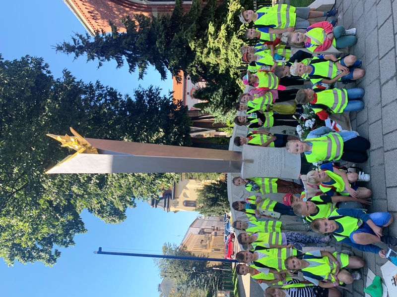 Następnie uczniowie spacerując ulicami Nowego Sącza zrobili sobie pamiątkowe zdjęcie przy Pomniku za Wolność - poświęconym ofiarom kaźni II wojny światowej. Chłodzili się przy fontannie w parku, gdzie mieli chwilę czasu na posiłek. Uczestniczyli w ruchu drogowym, odczytywali znaczenie znaków, korzystali z sygnalizacji świetlnej przechodząc przez ulicę. Ostatnim punktem programu był przejazd pociągiem. Na dworcu drugoklasiści poznali jego wyposażenie oraz słownictwo związane z podróżowaniem. Dworzec PKP wywarł na młodych podróżnikach ogromne wrażenie.