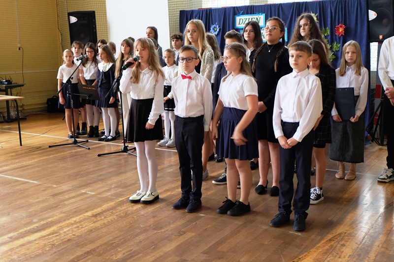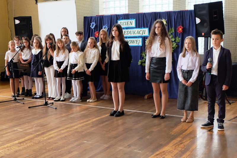 W dniu 13 października w naszej szkole obchodziliśmy Dzień Edukacji Narodowej. W kościele parafialnym uczestniczyliśmy we Mszy Świętej sprawowanej w intencji dyrekcji, wychowawców, nauczycieli, pracowników i uczniów naszej szkoły. Następnie, uroczyście przeszliśmy do szkoły, gdzie odbyła się akademia przygotowana przez Radę Samorządu Uczniowskiego. W tym roku świętowanie ma szczególny wymiar ponieważ 250 lat temu została ustanowiona pierwsza w Polsce i Europie instytucja o charakterze współczesnego ministerstwa oświaty. Podczas akademii, przypomnieliśmy historię powstania Komisji Edukacji Narodowej. Z e wzruszonymi sercami wyrecytowaliśmy słowa uznania, wdzięczności za poświęcenie, czas i cierpliwość każdemu wychowawcy i nauczycielowi. Ogłoszone zostały również wyniki konkursu „ Poznaj nauczyciela swego po zdjęciu z dzieciństwa jego”. Zadaniem uczestników było rozpoznać nauczycieli pracujących w naszej szkole na podstawie ich zdjęć z dzieciństwa. Konkurs cieszył się ogromną popularnością. Zwycięzcą konkursu została Dorota Król z klasy 6.