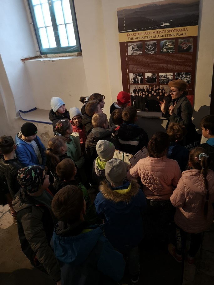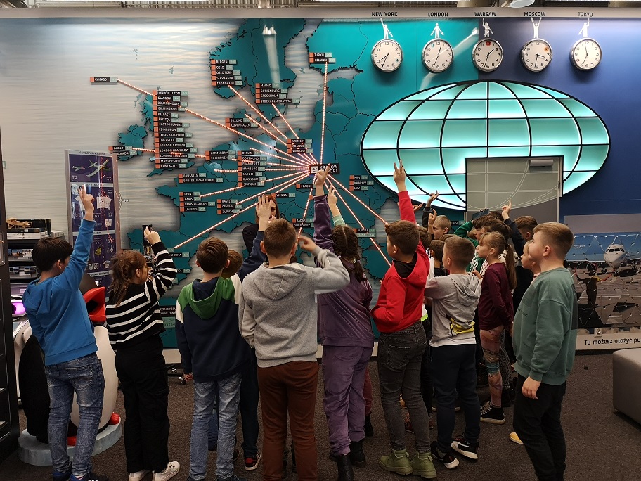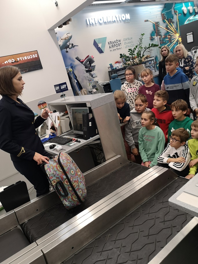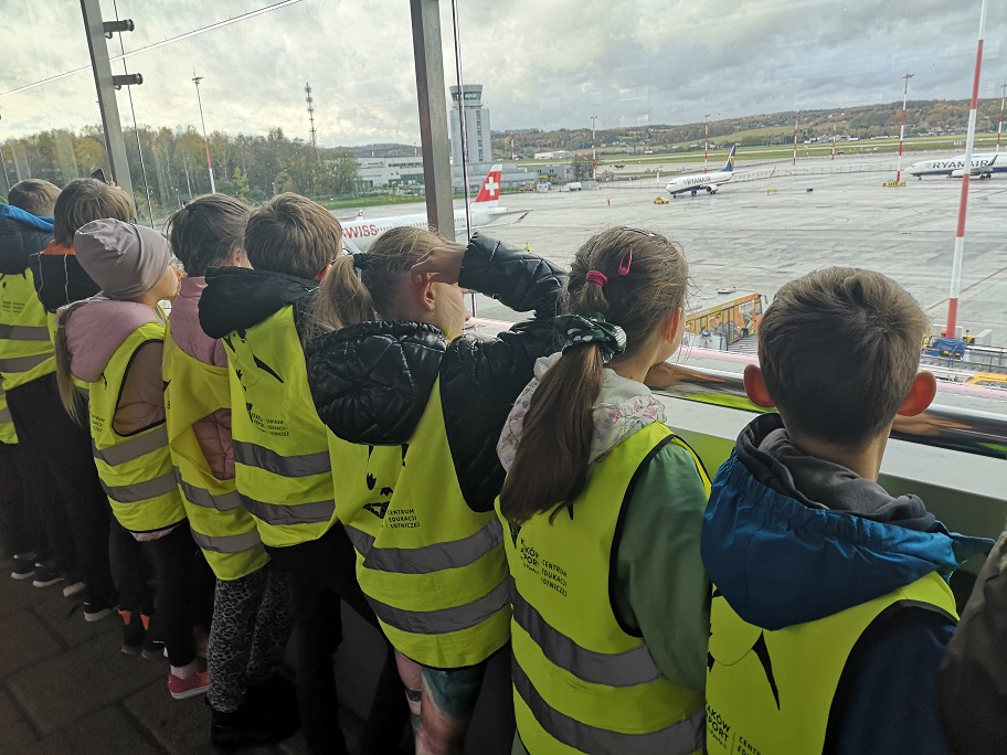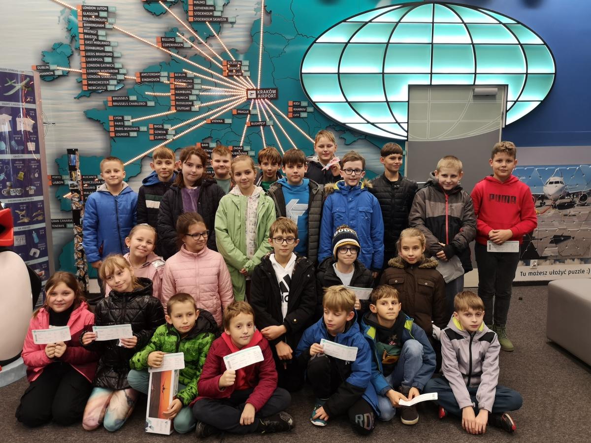 Klasa czwarta aktywnie i pracowicie spędziła czwartkowy dzień na warsztatach w Klasztorze Benedyktynów w Tyńcu i Centrum Edukacji Lotniczej na lotnisku w Balicach. Pierwsza część dnia upłynęła na zwiedzaniu najstarszego krakowskiego klasztoru. W czasie atrakcyjnych i emocjonujących zajęć uczniowie dowiedzieli się kim są mnisi i jak wygląda dzień za klasztornym murem. Poznali poszczególne pomieszczenia znajdujące się w klasztorze i ich znaczenie dla zakonników. Rywalizacja w formie podchodów pozwoliła uczniom zapoznać się życiem mnichów od średniowiecza po dzień dzisiejszy. Kolejnym punktem programu były zajęcia na lotnisku w Balicach, gdzie w Centrum Edukacji Lotniczej na czwartoklasistów czekały interaktywne zajęcia. W czasie warsztatów uczestnicy zapoznali się z zasadami funkcjonowania lotniska oraz przybliżyli sobie zasady podróżowania samolotami. Wszyscy mieli okazję praktycznego sprawdzenia procedur z zakresu obsługi pasażera na lotnisku – od momentu zarejestrowania bagażu, przez wydruk kart pokładowych , kontrolę pasażerską, a kończąc na zajęciu miejsca w samolocie i zapoznaniu się z procedurami bezpieczeństwa. Najbardziej aktywni uczestnicy zajęć mieli okazję spróbować swoich sił na symulatorze lotów. Wycieczka zakończyła się wizytą na tarasie widokowym, gdzie można było obserwować przygotowanie do lotu oraz startów i lądowań kilku samolotów. Celem tych zajęć było poszerzenie zainteresowań i pokazać specyfikę pracy lotniska oraz zawodów lotniskowych wraz z możliwością kształcenia w branży. Wycieczka była bardzo dobrą okazją do integracji zespołu klasowego i z pewnością zostanie długo w pamięci każdego uczestnika.