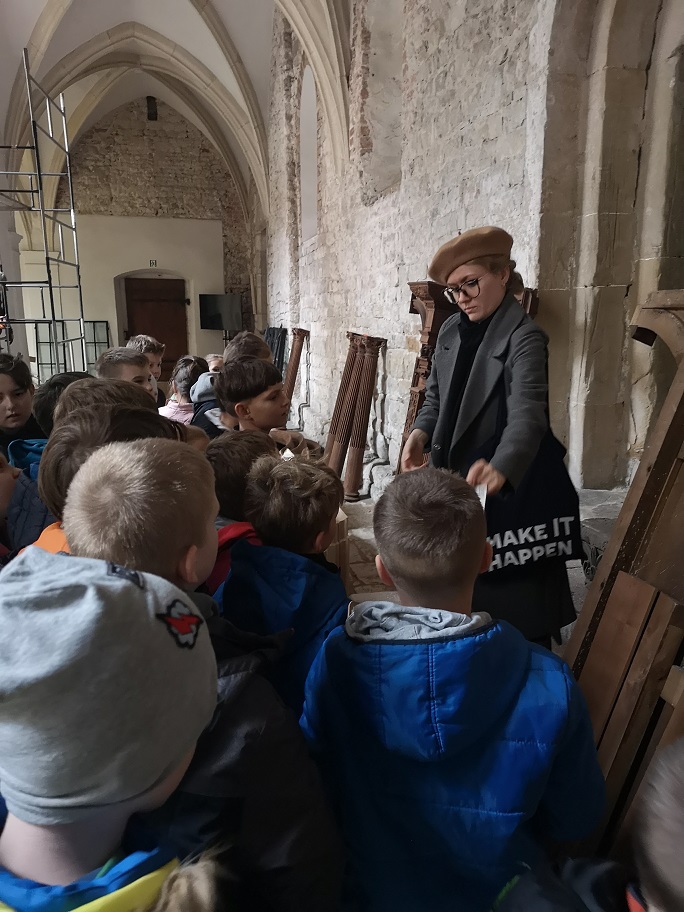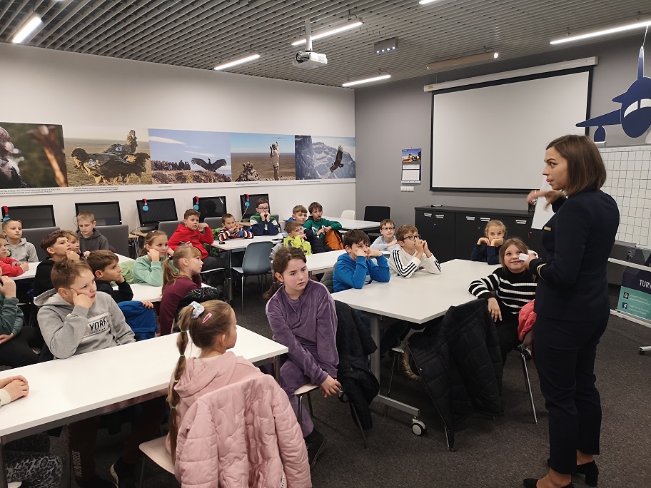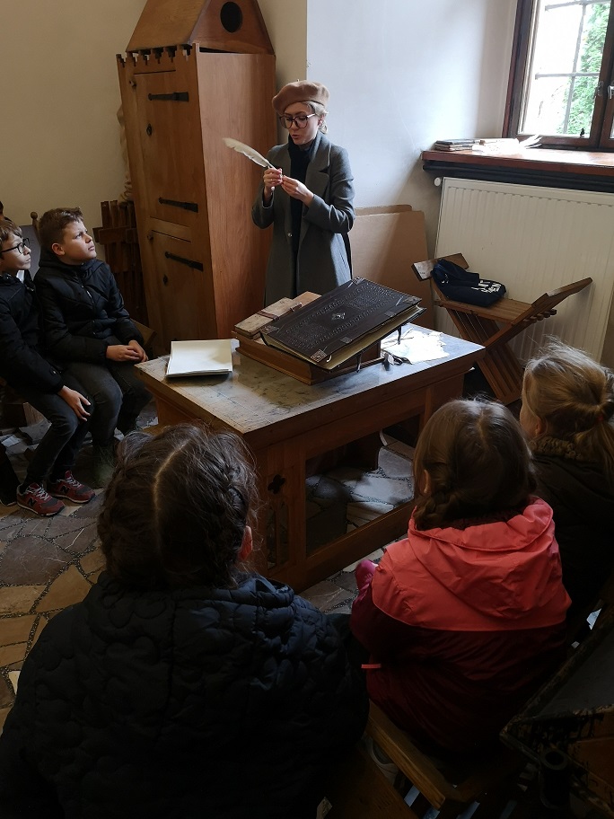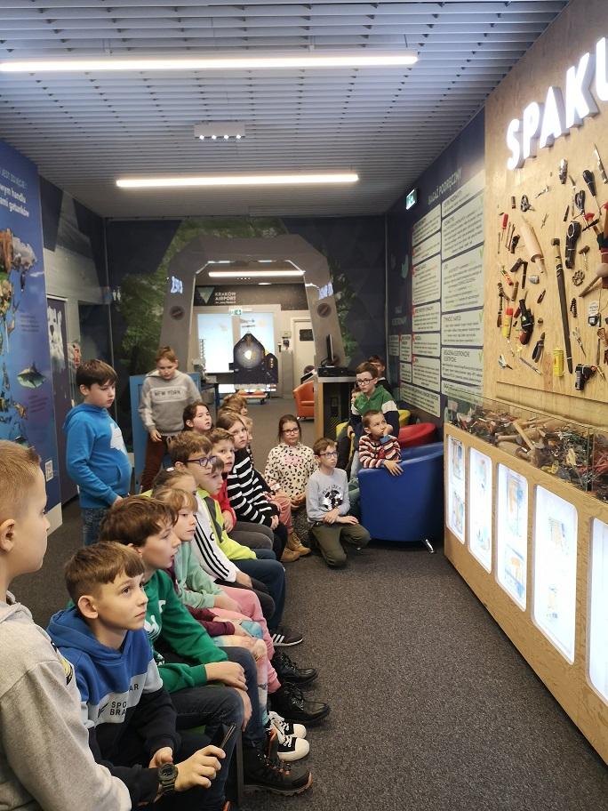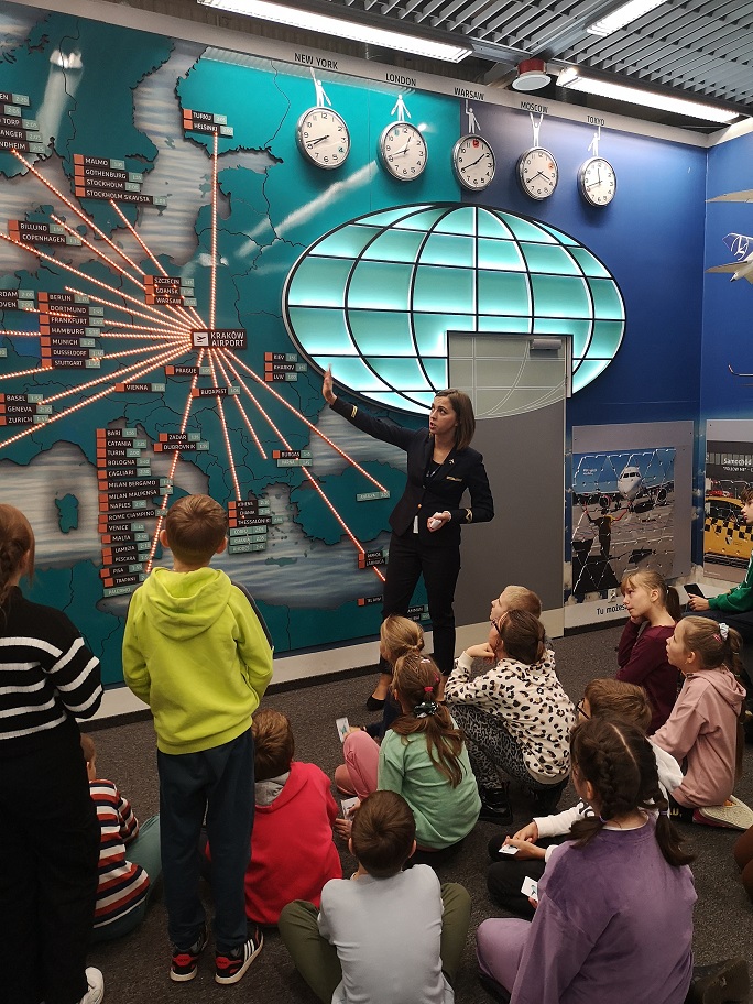 Klasa czwarta aktywnie i pracowicie spędziła czwartkowy dzień na warsztatach w Klasztorze Benedyktynów w Tyńcu i Centrum Edukacji Lotniczej na lotnisku w Balicach. Pierwsza część dnia upłynęła na zwiedzaniu najstarszego krakowskiego klasztoru. W czasie atrakcyjnych i emocjonujących zajęć uczniowie dowiedzieli się kim są mnisi i jak wygląda dzień za klasztornym murem. Poznali poszczególne pomieszczenia znajdujące się w klasztorze i ich znaczenie dla zakonników. Rywalizacja w formie podchodów pozwoliła uczniom zapoznać się życiem mnichów od średniowiecza po dzień dzisiejszy. Kolejnym punktem programu były zajęcia na lotnisku w Balicach, gdzie w Centrum Edukacji Lotniczej na czwartoklasistów czekały interaktywne zajęcia. W czasie warsztatów uczestnicy zapoznali się z zasadami funkcjonowania lotniska oraz przybliżyli sobie zasady podróżowania samolotami. Wszyscy mieli okazję praktycznego sprawdzenia procedur z zakresu obsługi pasażera na lotnisku – od momentu zarejestrowania bagażu, przez wydruk kart pokładowych , kontrolę pasażerską, a kończąc na zajęciu miejsca w samolocie i zapoznaniu się z procedurami bezpieczeństwa. Najbardziej aktywni uczestnicy zajęć mieli okazję spróbować swoich sił na symulatorze lotów. Wycieczka zakończyła się wizytą na tarasie widokowym, gdzie można było obserwować przygotowanie do lotu oraz startów i lądowań kilku samolotów. Celem tych zajęć było poszerzenie zainteresowań i pokazać specyfikę pracy lotniska oraz zawodów lotniskowych wraz z możliwością kształcenia w branży. Wycieczka była bardzo dobrą okazją do integracji zespołu klasowego i z pewnością zostanie długo w pamięci każdego uczestnika.