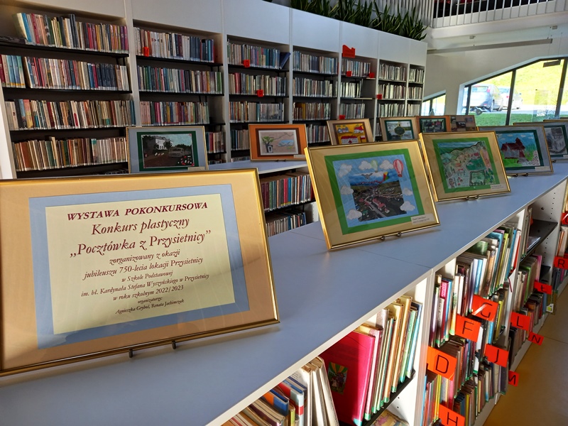 Organizatorzy szkolnego konkursu we współpracy z Dyrekcją i Pracownikami Biblioteki Publicznej w Przysietnicy przygotowali w budynku Biblioteki Publicznej wystawę pokonkursową, która jest dostępna dla całej społeczności lokalnej w godzinach pracy Biblioteki. Dziękujemy p. Monice Jackowicz-Nowak – Dyrektor Powiatowej i Miejsko-Gminnej Biblioteki Publicznej w Starym Sączu za umożliwienie przygotowania ekspozycji w lokalu Filii Biblioteki w Przysietnicy.