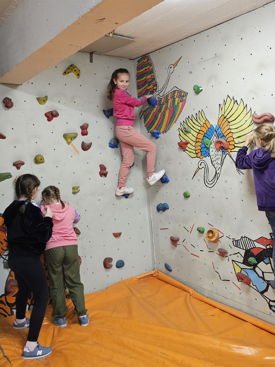 Tegorocznym prezentem od Świętego Mikołaja dla klasy czwartej były zajęcia w Centrum Wspinaczkowym w Boulder Zone w Nowym Sączu. Wszyscy uczestnicy z niecierpliwością i zaciekawieniem oczekiwali tego wyjazdu. Spotkanie na zajęciach sprawnościowych okazały się niezwykle trafionym i absorbującym upominkiem. Każde dziecka pod okiem profesjonalnych instruktorów spróbowało swoich sił w pokonywaniu własnych lęków w czasie wspinania na czas, pokonywania tras tematycznych i zróżnicowanych pod kątem trudności. Każdy miał możliwość wykonania ćwiczenia - "wahadło", co okazało się dla wielu ogromnym wyzwaniem. Zajęcia były dla wszystkich niezapomnianym i wyjkątkowym prezentem.