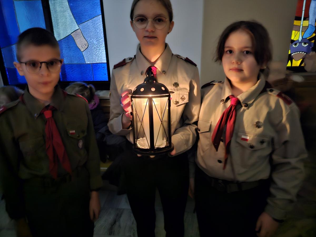 22.12.2023r. harcerze z 1NDWp Orion na roratniej mszy świętej przekazali mieszkańcom Przysietnicy Betlejemskie Światełko Pokoju w Kościele Parafialnym. Nastepnie tradycyjnie Swiatełko dla społecznosci szkolnej zostało złożone na ręce Dyrekcji Szkoły Podstawowej. Betlejemskie Swiatło pokoju od lat jednoczy oraz brata. Niech i w tym roku będzie ono symbolem pokoju i pojednania w rodzinach, w pracy i w świecie.