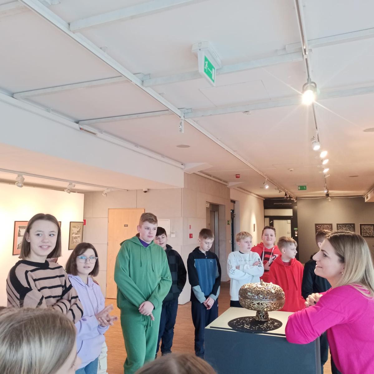 24 stycznia całą klasą wybraliśmy się na wycieczkę do Nowego Sącza. Najpierw wzięliśmy udział w warsztatach w Galerii Sztuki Współczesnej BWA, które poprowadziła dla nas p. Sylwia. Warsztaty oparte były na wystawie DE FACTO UDAD 2023 składającej się z prac artystów z Rumunii. P. Sylwia przedstawiła nam prace z obszaru malarstwa, rzeźby, graweru, rysunku, płaskorzeźby, rzeźby, haftu, fotografii i techniki cyfrowej. Dowiedzieliśmy się bardzo dużo na ich temat. Pod koniec warsztatów zagraliśmy w grę zespołową dziewczyny kontra chłopcy. Każdy z nas wylosował karteczkę z danym obszarem sztuki. Dziewczyny pracowały na I piętrze, chłopcy na II. Po fragmencie narysowanego przez nas obrazu przeciwnicy musieli odgadnąć, która praca była przedstawiona. Gra zakończyła się remisem, ale każdy zespół miał dużo satysfakcji z wykonanej sztuki. Po warsztatach przeszliśmy do kina Sokół w celu obejrzenia projekcji najnowszego filmu pt. „Akademia Pana Kleksa”. Seans bardzo się nam spodobał, szczególnie: efekty specjalne, aktorzy i umiejscowienie akcji we współczesności. Jeszcze bardziej utwierdziliśmy się w przekonaniu, że zawsze warto pomagać innym, nawet tym, którzy nam źle czynią. Ponadto, Ada ukazała nam, jak walczyć ze swoim strachem i zbierać się na odwagę do wykonania trudnych zadań.