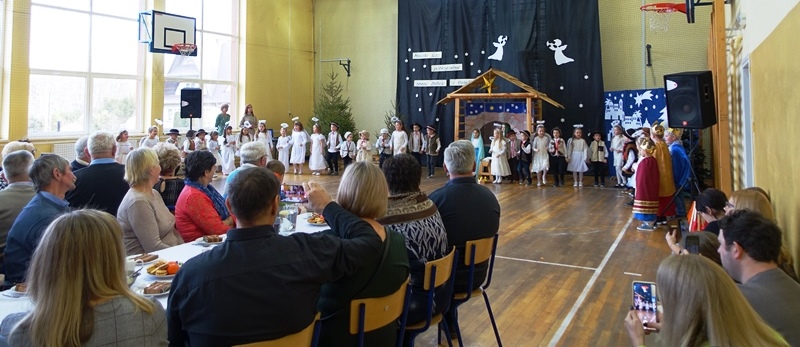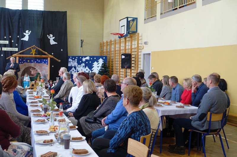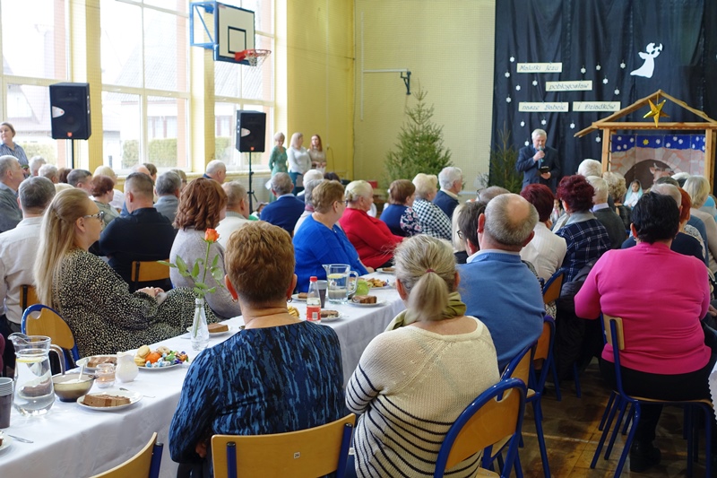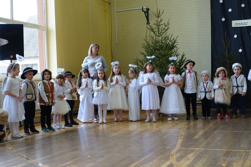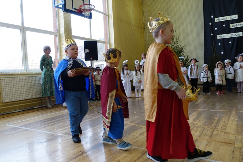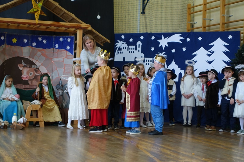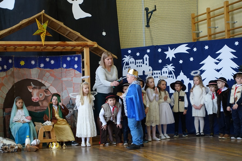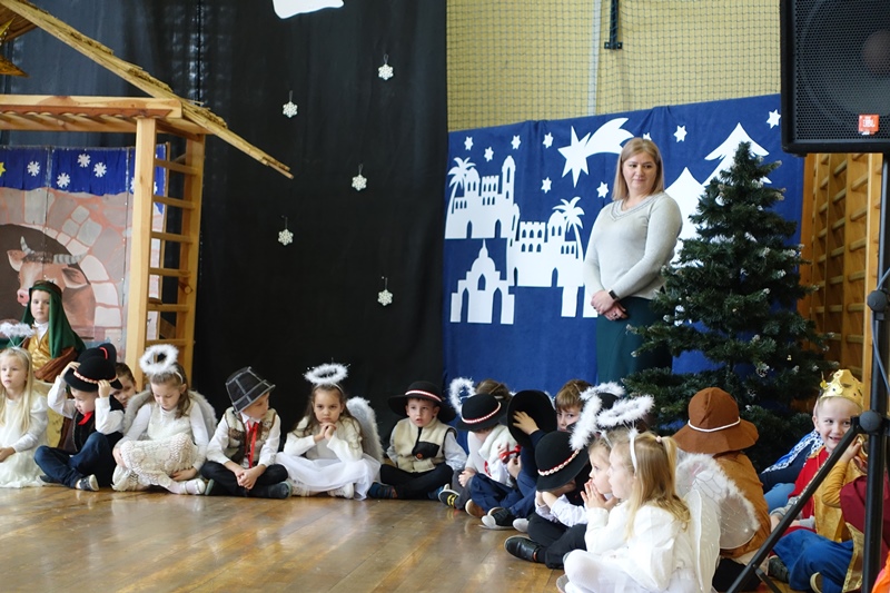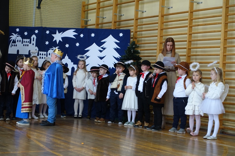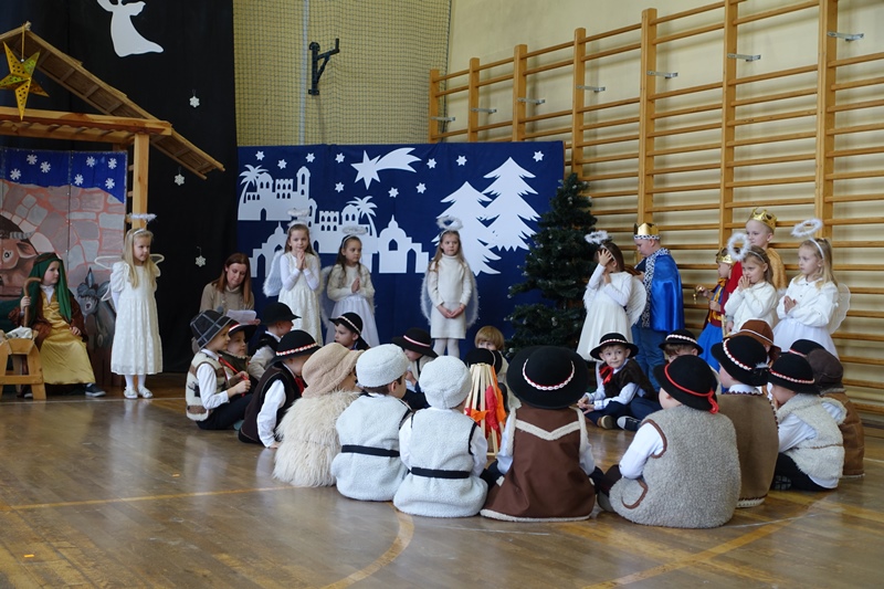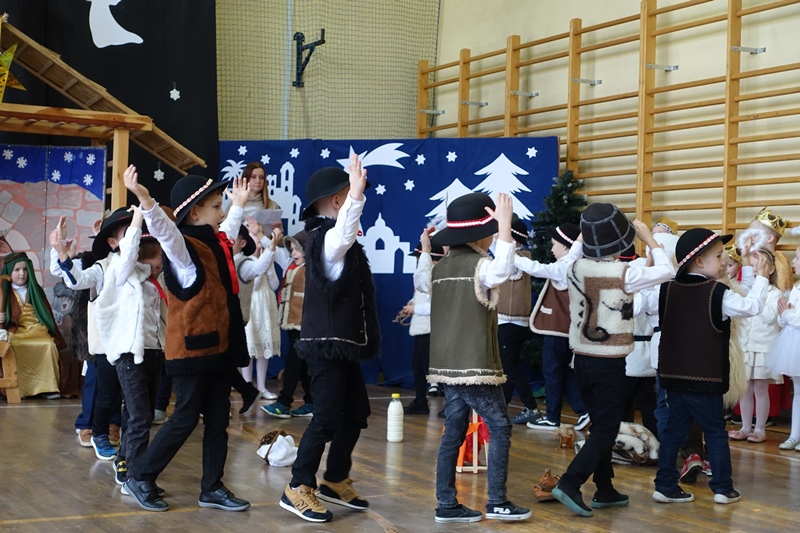 Tradycją naszej szkoły jest przygotowywanie Uroczystości z okazji Dnia Babci i Dziadka przez najmłodszych uczniów. W tym roku dzieci z oddziałów przedszkolnych 0-1 i 0-2 pod kierunkiem wychowawców i nauczycieli: p. Agnieszki, p. Alicji, p. Celinki i p. Renaty dla swoich Dziadków przygotowały przedstawienie jasełkowe. Nie zabrakło również poetyckich życzeń i piosenek oraz tańców dla naszych kochanych Bliskich. Mali artyści z przejęciem odtwarzali swoje role, a czcigodni goście ze wzruszeniem odbierali czułe słowa, które wnuczęta kierowały pod ich adresem. Po przedstawieniu życzenia zebranym Gościom złożył Dyrektor szkoły p. Aleksander Łukasik.