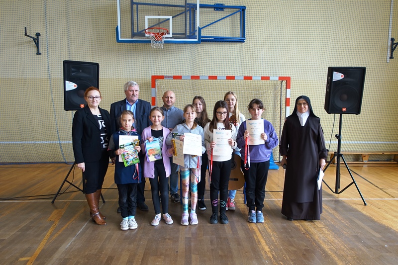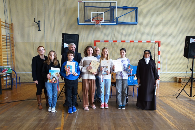 Laureaci i uczestnicy konkursu otrzymali w piątek, 2 lutego z rąk Pana Dyrektora, pamiątkowe dyplomy oraz ufundowane przez Księdza Proboszcza i Radę Rodziców nagrody książkowe i rzeczowe.
