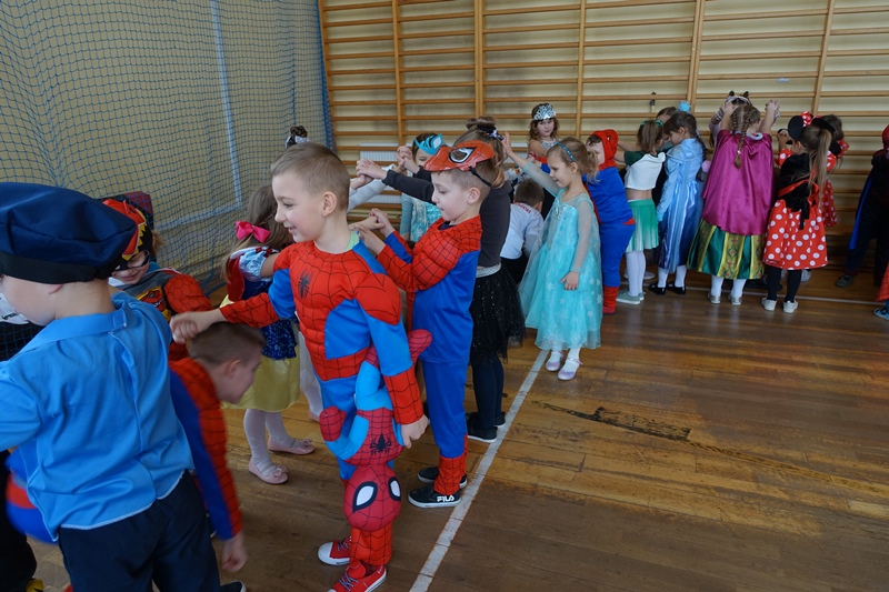 W ostatnich dniach kończącego się karnawału najmłodsi uczniowie naszej szkoły bawili się na długo wyczekiwanym balu kostiumowym. W bajecznie kolorowych strojach i przebraniach za ulubionych bohaterów bajek i filmów wszyscy bawili się doskonale. Po tańcach i zabawach każda klasa miała przygotowany przez rodziców poczęstunek, który - jak na tłusty czwartek przystało -stanowił przeważnie pyszny pączek!