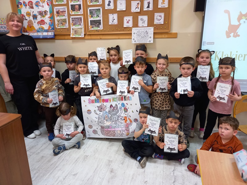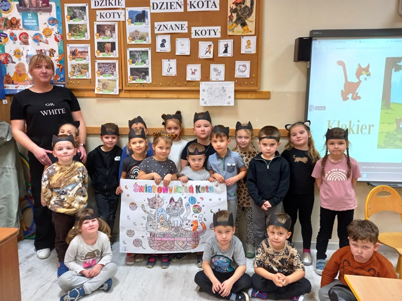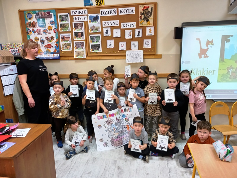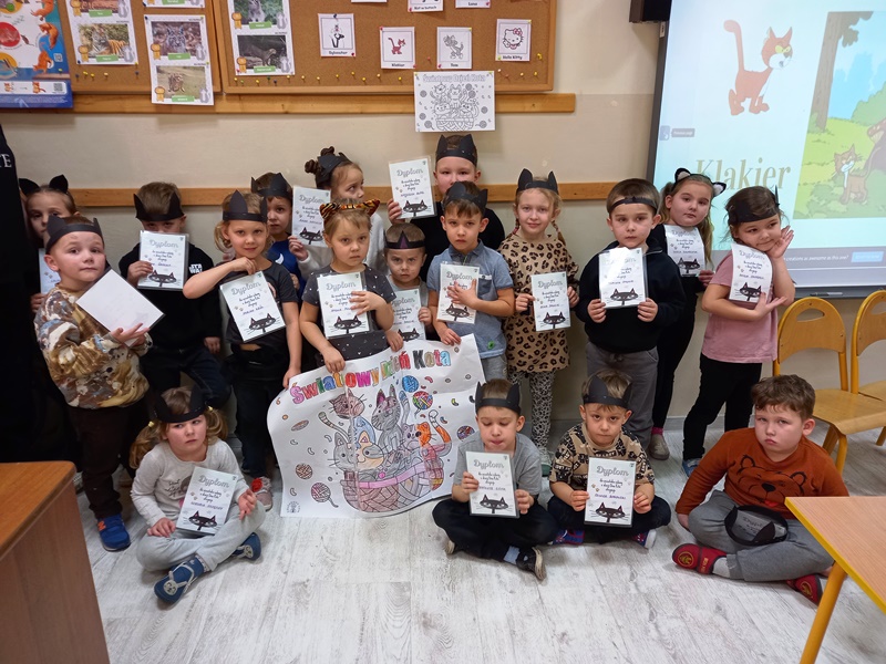 Przedszkolaki z oddziału 0-1 podczas różnorodnych zajęć miały możliwość zdobycia wiedzy na temat odżywiania, pielęgnacji i ulubionych zabaw tych wspaniałych zwierzątek. Dowiedziały się również o życiu kotów na wolności, w schroniskach oraz o ich roli w przyrodzie. Uczyły się, w jaki sposób opiekować się tymi zwierzętami,  poznały różne rasy, a także dowiedziały się  wielu ciekawostek na temat naszych milusińskich. Oglądały książeczki i zdjęcia  dzikich kotów zamieszkujących różne zakątki ziemi, a poprzez zabawy ruchowe i rekwizyty, miały możliwość wcielenia się w te urocze zwierzątka.