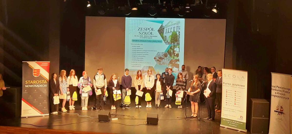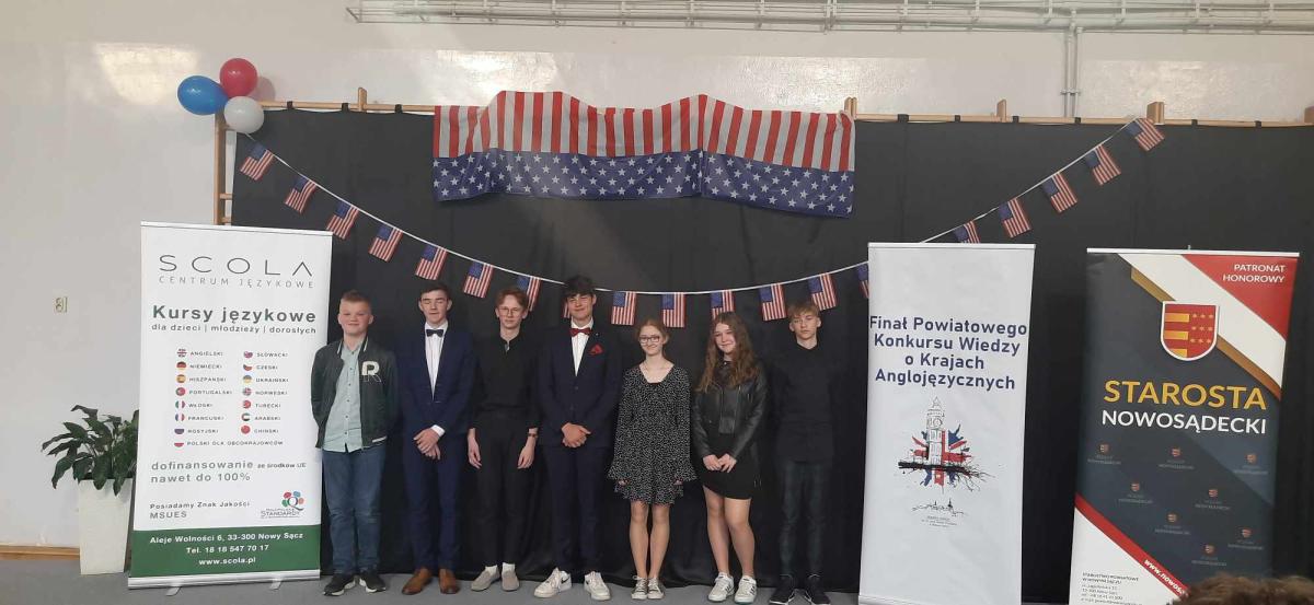 W dniu 17 kwietnia 2024r. uczniowie klas 7 i 8 (którzy w lutym przeszli etap szkolny) wzięli udział w finale XIV Powiatowego Konkursu Wiedzy o Krajach Anglojęzycznych w Zespole Szkół w Starym Sączu. Finaliści, którzy reprezentowali szkołę to: