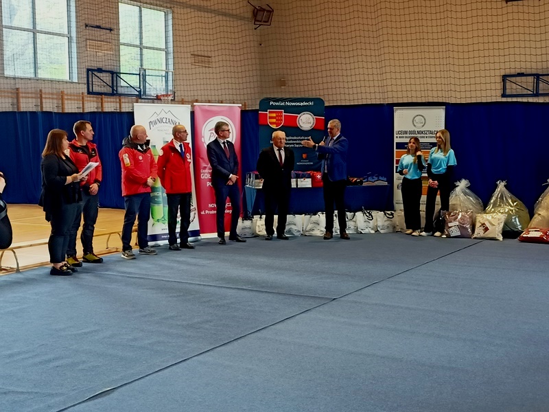 Nagrody wręczali: Burmistrz Starego Sącza Jacek Lelek, Edward Ciągło, członek Zarządu Powiatu Nowosądeckiego, Michał Słaboń - naczelnik Krynickiej Grupy GOPR, Roman Gurgul Sędzia Główny Mistrzostw ratownik medyczny, Krzysztof Szewczyk - dyrektor Liceum Ogólnokształcącego im. Marii Skłodowskiej-Curie w Starym Sączu oraz Andrzej Lis - prezes OR PCK w Starym Sączu.