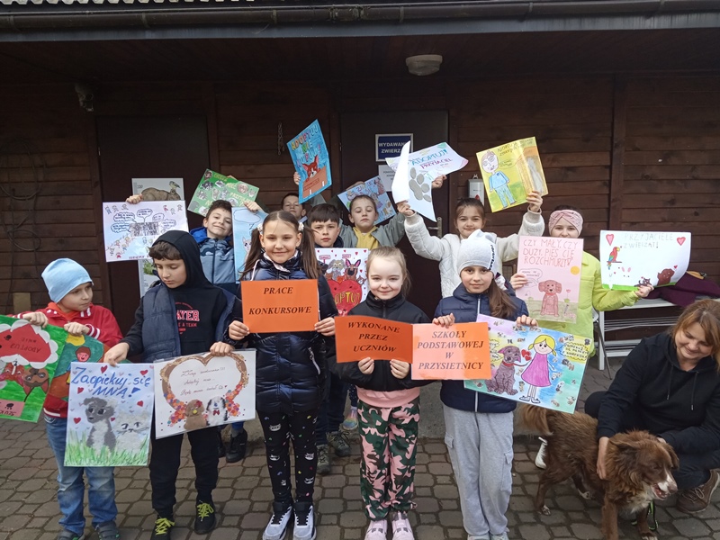 W ramach zadań dobroczynnych do modułu II dzieci wzięły udział w szkolnym konkursie plastycznym promującym adopcję zwierząt oraz odwiedziły schronisko w Starym Sączu i przekazały prace plastyczne, które miejmy nadzieję zachęcą do adopcji piesków.
