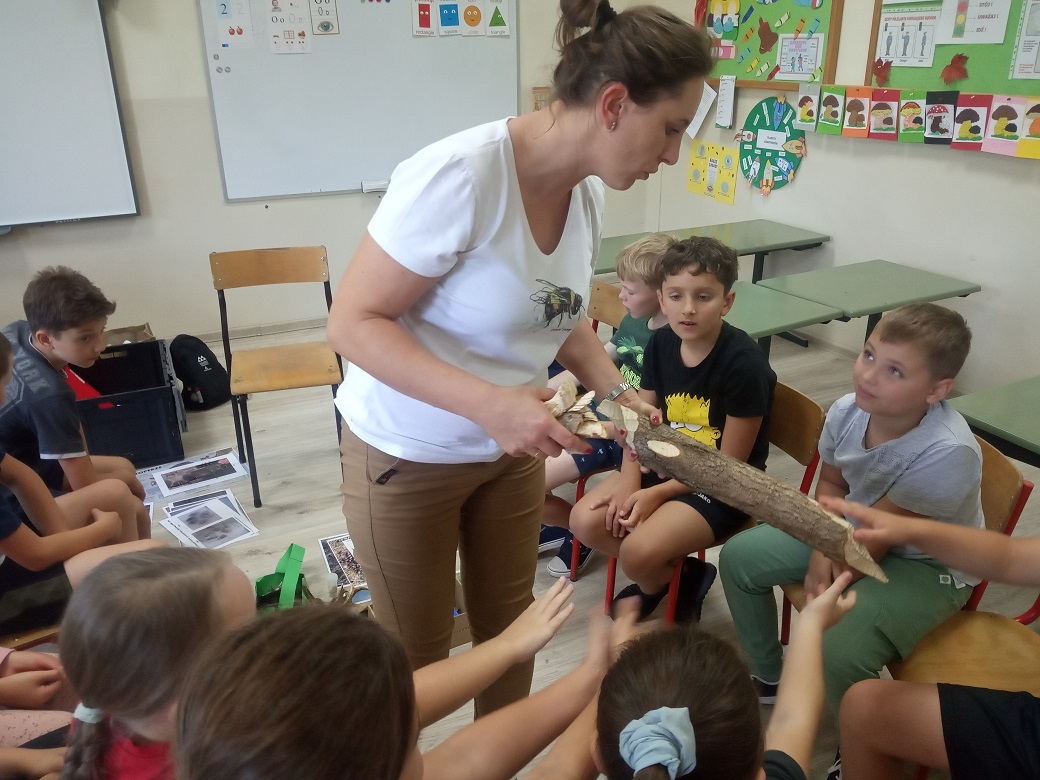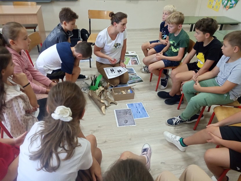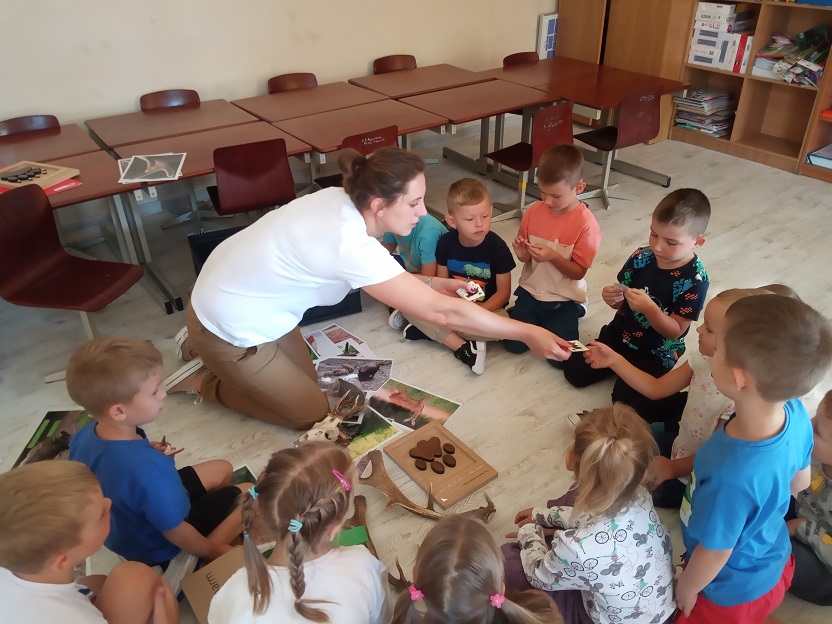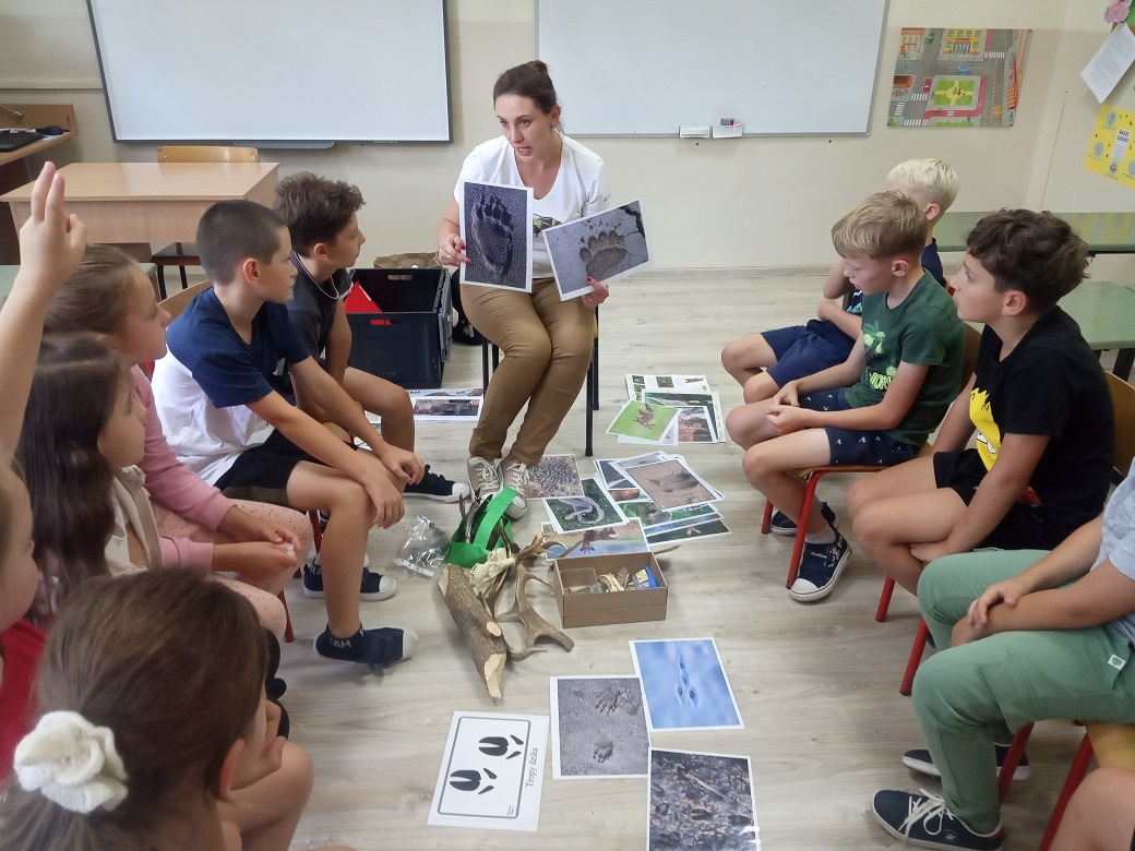 W czwartek 12 września dzieci z oddziałów przedszkolnych oraz uczniowie z klas 1-3 uczestniczyli w spotkaniu z p. Anną Świsterską, pracownikiem Popradzkiego Parku Krajobrazowego. W czasie prelekcji zapoznali się z fauną Beskidu Sądeckiego. Z zaciekawieniem słuchali w jaki sposób rozróżniać tropy zwierząt i poznali wiele ciekawostek na temat życia borsuków, bobrów, jeży i innych gatunków zamieszkujących na tym terenie.