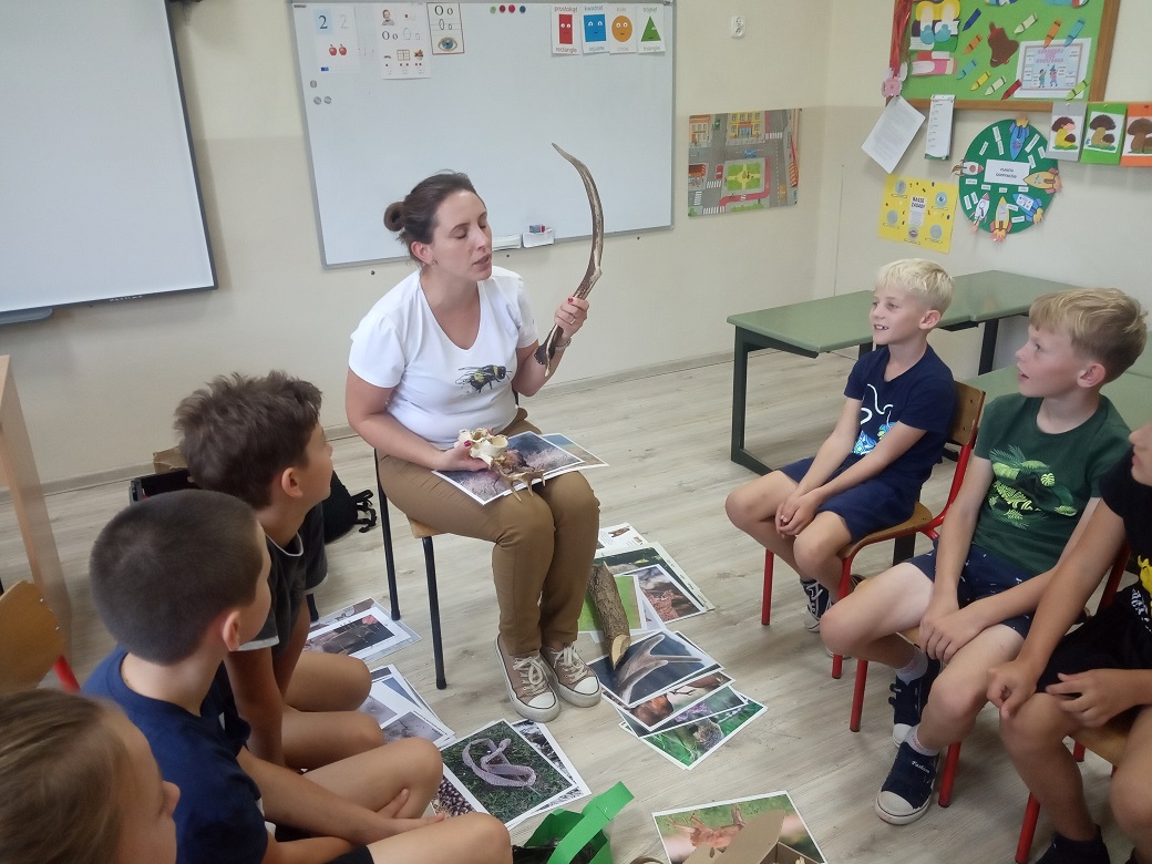 Zajęcia przyrodnicze były bardzo interesujące, a piękne zdjęcia i inne pomoce, które każdy uczeń mógł dotknąć i obejrzeć dodatkowo uatrakcyjniły warsztaty.