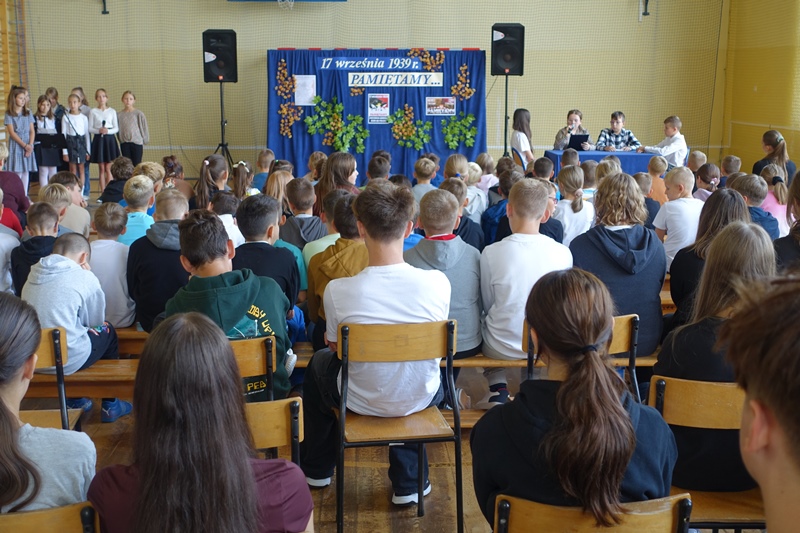17 września to ważna data w historii Polski, przypominająca o trudnych i bolesnych zdarzeniach związanych z atakiem radzieckim w 1939 r. Obecnie obchodzimy 85. rocznicę owych wydarzeń. Z tej okazji odbył się uroczysty apel upamiętniający ofiary agresji sowieckiej. Uczniowie naszej społeczności szkolnej zaprezentowali montaż słowno-muzyczny, w ramach którego wystawiono inscenizację pt. „Lekcja historii”. Recytowane były wiersze odzwierciedlające grozę tamtych dni, a także śpiewano pieśni przywołujące pamięć o tragicznych losach narodu polskiego. Po części artystycznej głos zabrała Pani Dyrektor – Anna Golonka. Apel miał istotne znaczenie w kalendarzu szkolnym nie tylko jako lekcja historii, ale również jako przypomnienie o wartości niepodległości i wolności w życiu każdego człowieka.