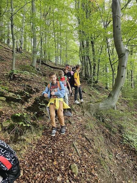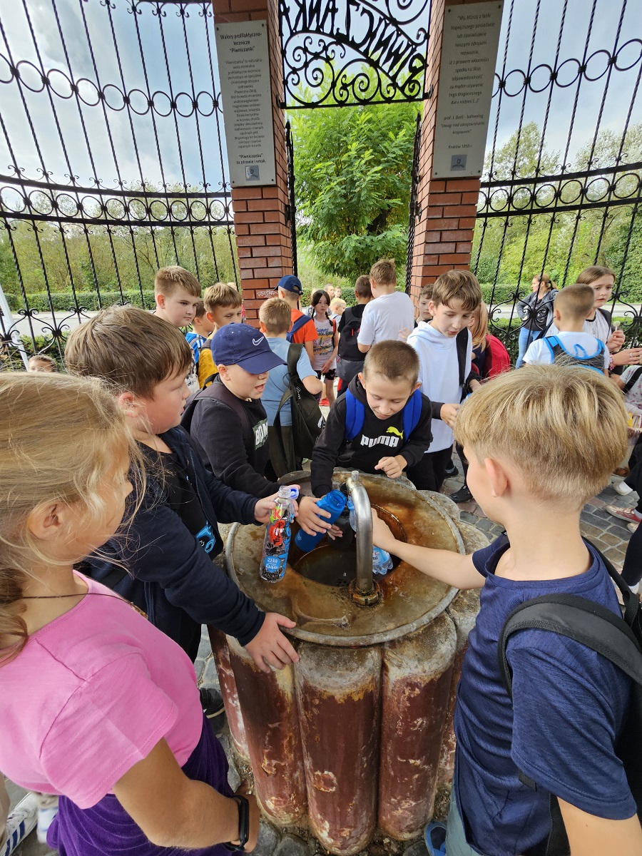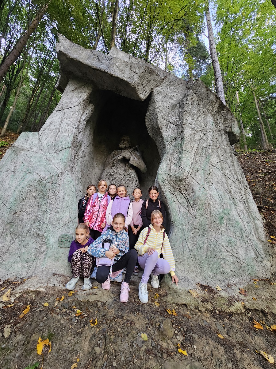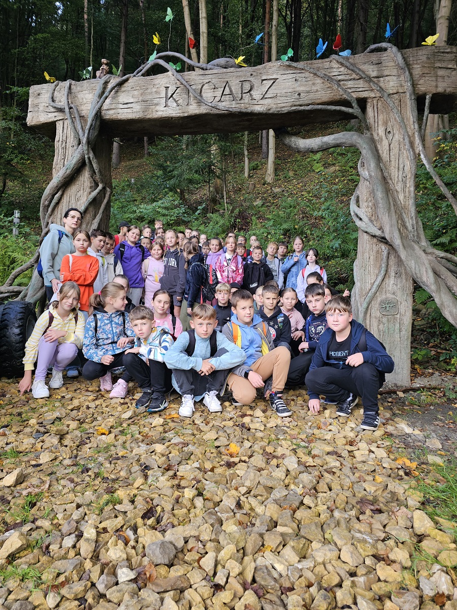 25 września klasy 4a, 4b i 5 wraz z wychowawczyniami udała się na wycieczkę do Piwnicznej Zdrój. Podróż rozpoczęliśmy pociągiem w Barcicach, co dla wielu było pierwszym doświadczeniem tego typu. Po krótkiej przejażdżce wszyscy z zapałem ruszyli na trasę, by zdobyć pobliskie wzgórze - Kicarz (703 m n.p.m.). Na trasie można było obejrzeć modele motyli oraz zapoznać się z ich charakterystyką. Po drodze dotarliśmy do groty legendarnego Kicarza i jego skarbów. Po dotaciu na szczyt wszyscy mogliśmy podziwiać piękne widoki na dolinę Popradu. W drodze powrotnej do Piwnicznej zwiedziliśmy Pijalnię, gdzie próbowaliśmy wody mineralnej z pobliskiego źródełka. Wycieczka była okazją do integracji uczniów oraz poznania naszej pięknej Ziemi Sądeckiej.