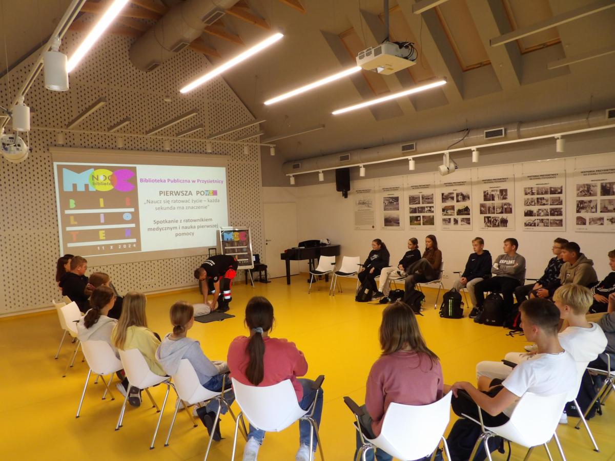 10 października uczniowie klasy VII zostali zaproszeni przez Bibliotekę Publiczną na spotkanie z ratownikiem medycznym, które zaplanowane zostało w cyklu lekcji bibliotecznych dla naszej szkoły organizowanych przez Bibliotekę Publiczną w Przysietnicy.