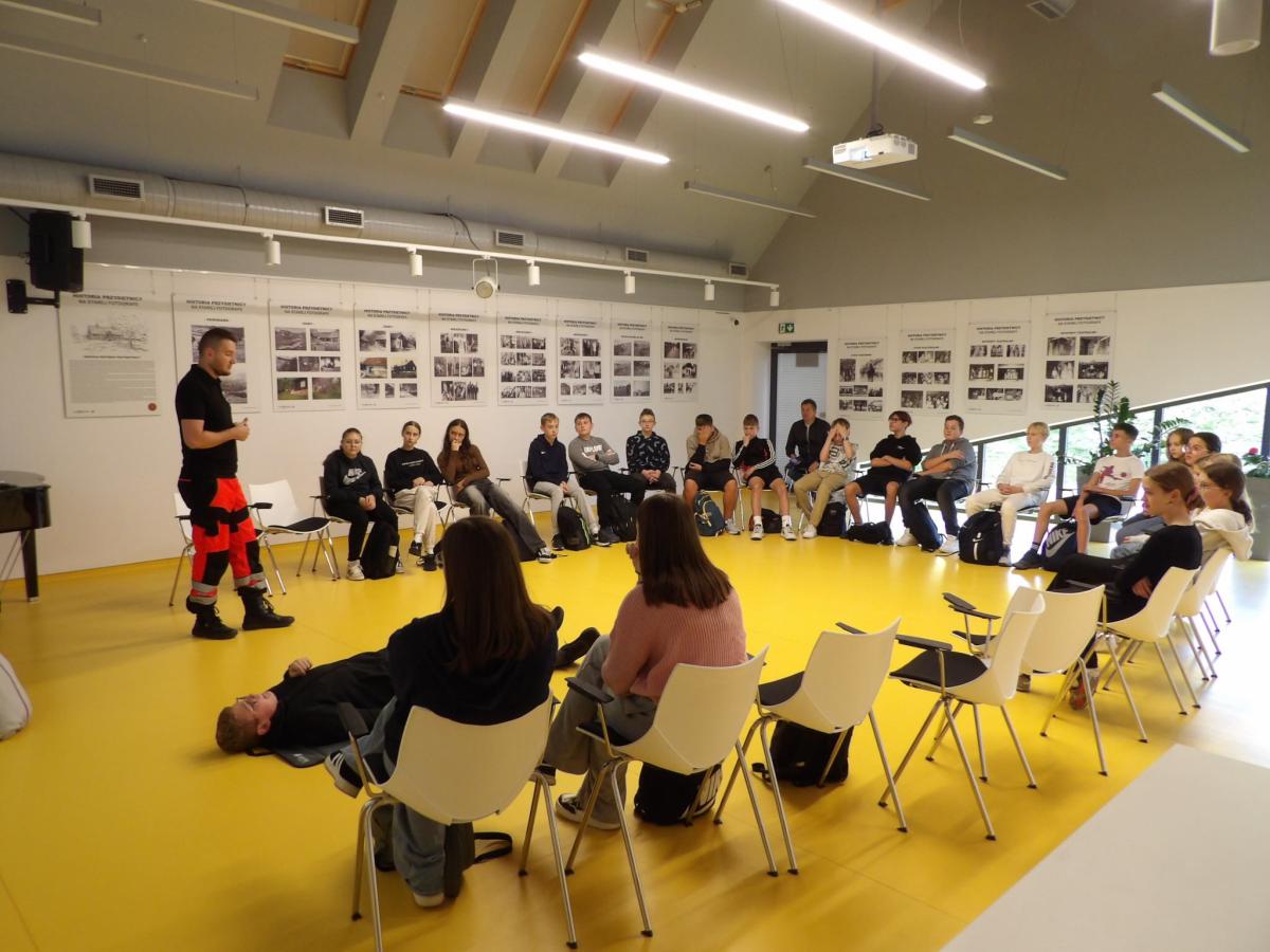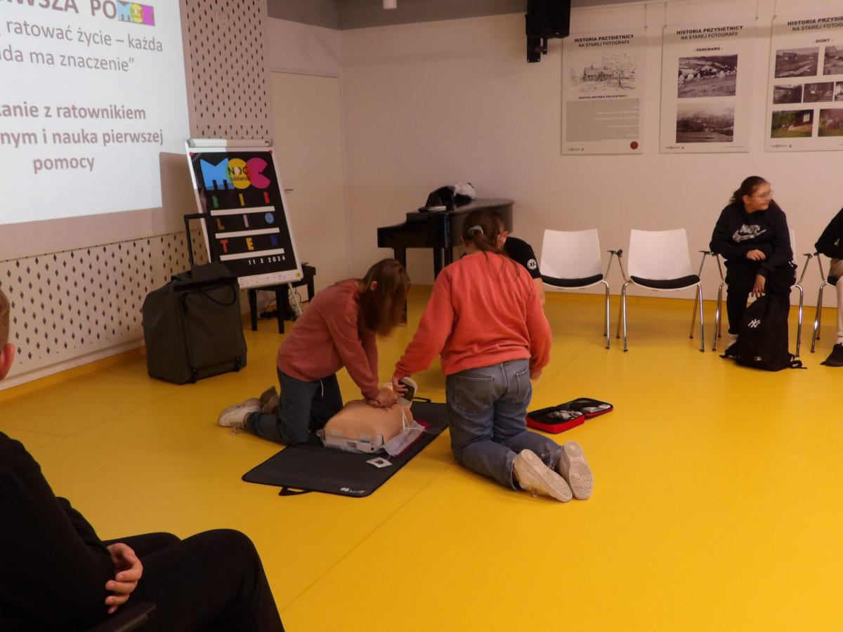 Ratownik zapoznawał uczniów z zasadami postępowania w sytuacji zagrożenia życia. Prezentował czynności, jakie należy podjąć w przypadku, gdy potrzebna jest pomoc przy utracie przytomności. Uczył prawidłowej reanimacji. Uczniowie dowiedzieli się, jak postępować w przypadku zakrztuszenia czy zadławienia. Każdy z uczestników spotkania miał możliwość przetrenowania udzielania pierwszej pomocy na manekinie.