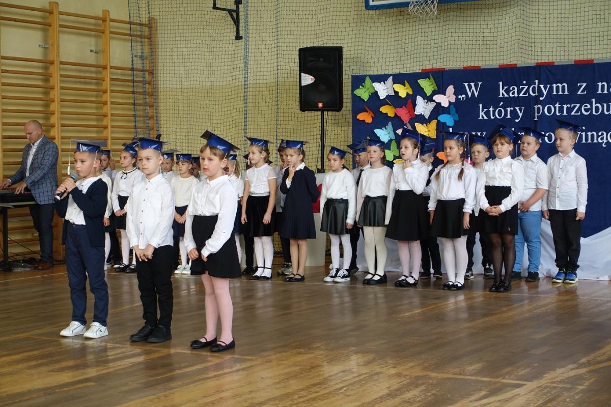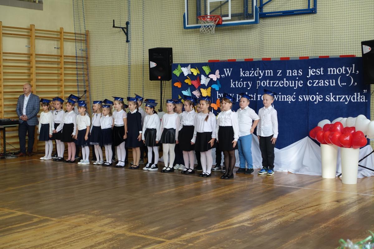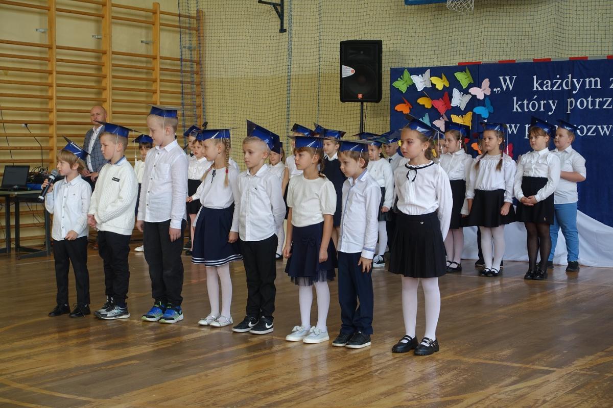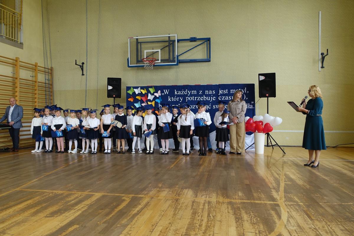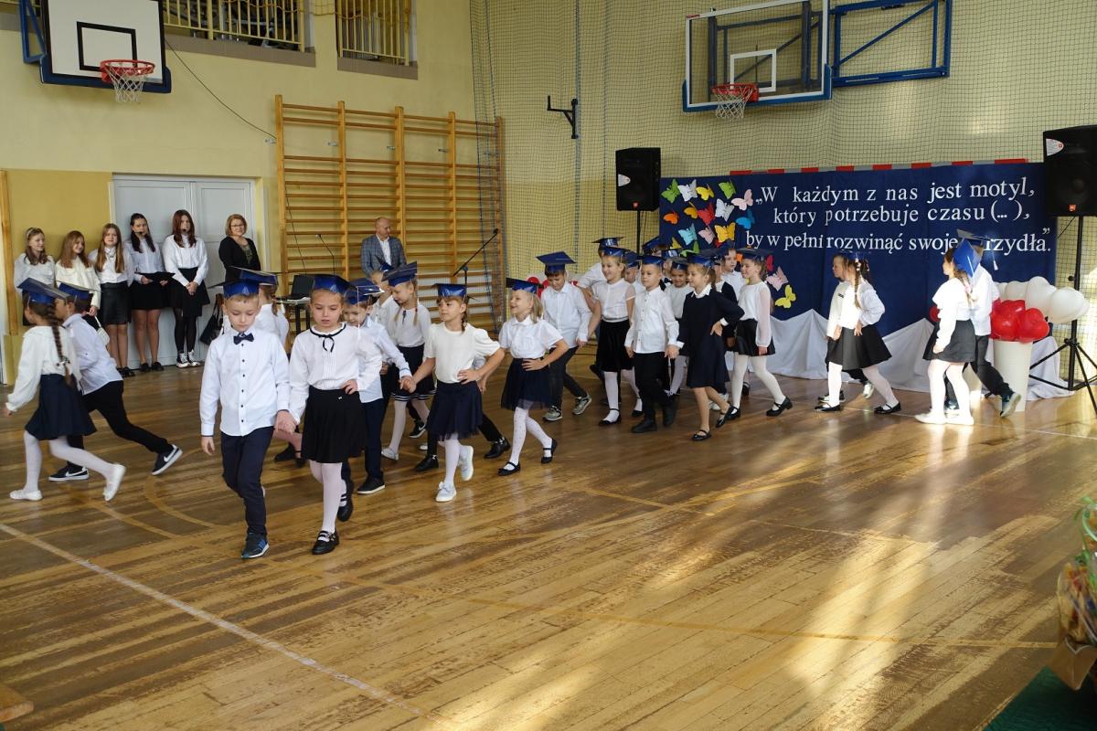 Zanim pierwszoklasiści zostali przyjęci do grona społeczności szkolnej musieli przedstawić to, czego już się w szkole nauczyli. Gotowi, odświętnie ubrani i bardzo przejęci przystąpili do zaprezentowania swoich umiejętności. Rozpoczęto tradycyjnie od zatańczenia Poloneza. Następnie zadaniem uczniów było m.in. zaśpiewanie piosenek, recytacja wierszy oraz umiejętność odpowiedzi na szereg bardzo ważnych pytań, w szczególności zawartych w "Katechizmie polskiego dziecka". Po zakończonej prezentacji nikt nie miał wątpliwości, że wszystkie dzieci wspaniale zdały "egzamin pierwszoklasisty".