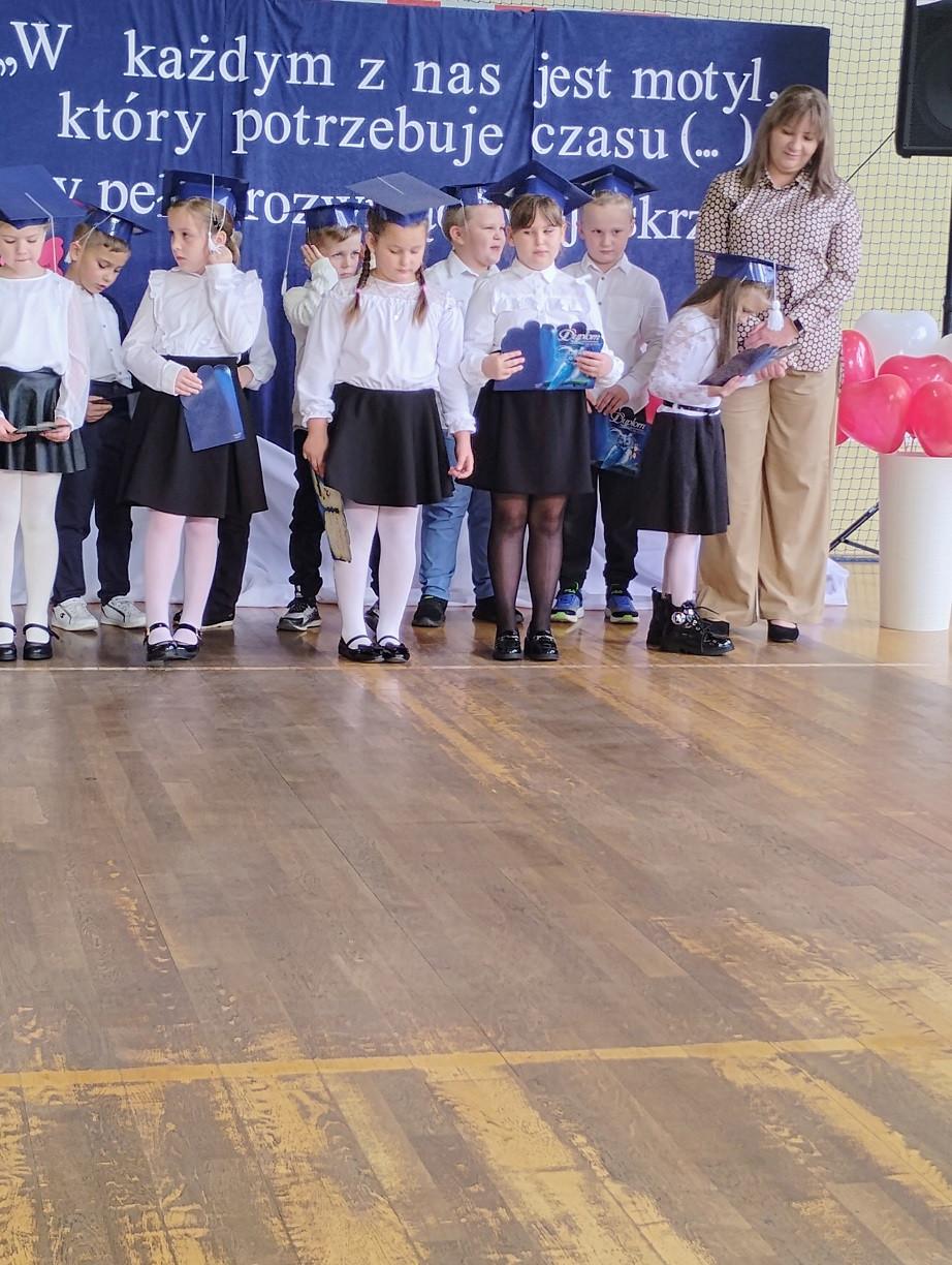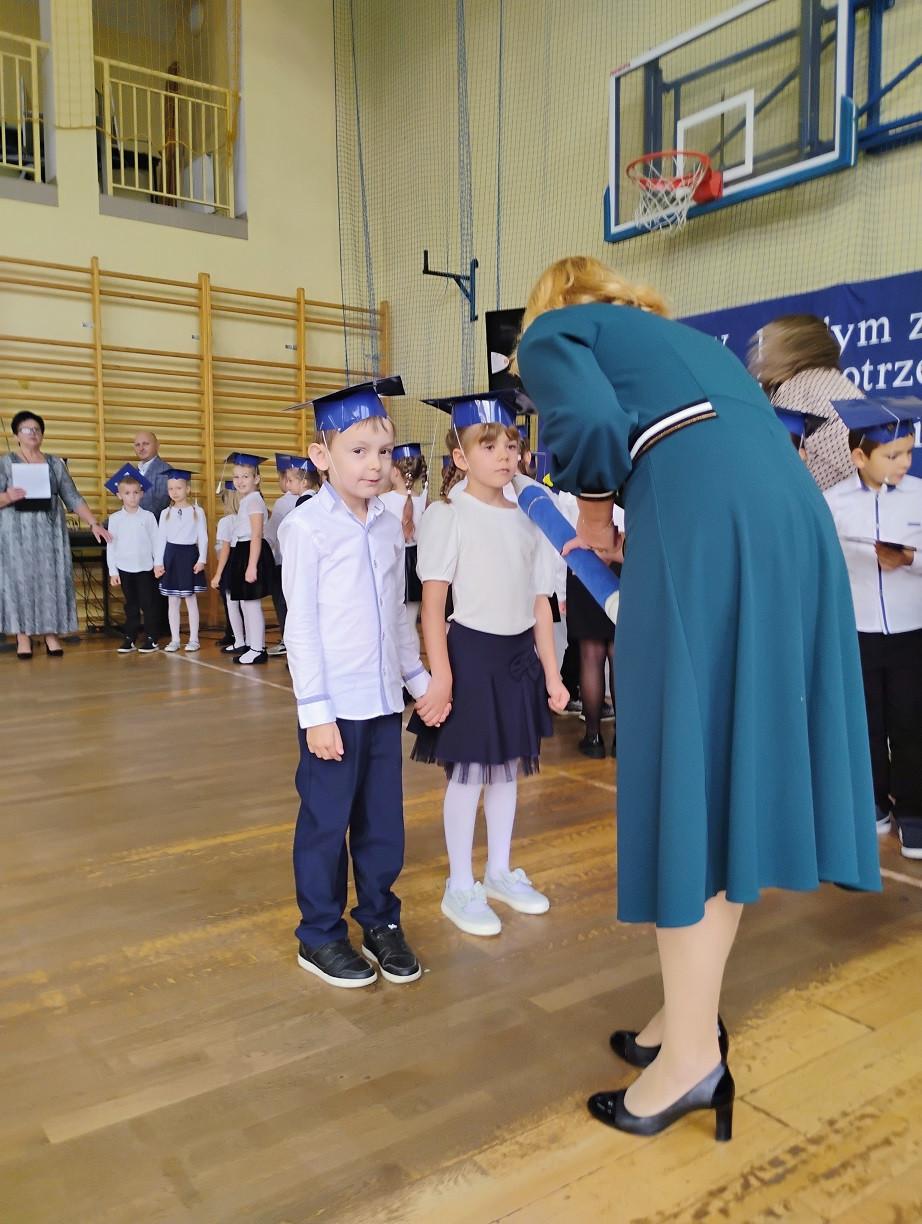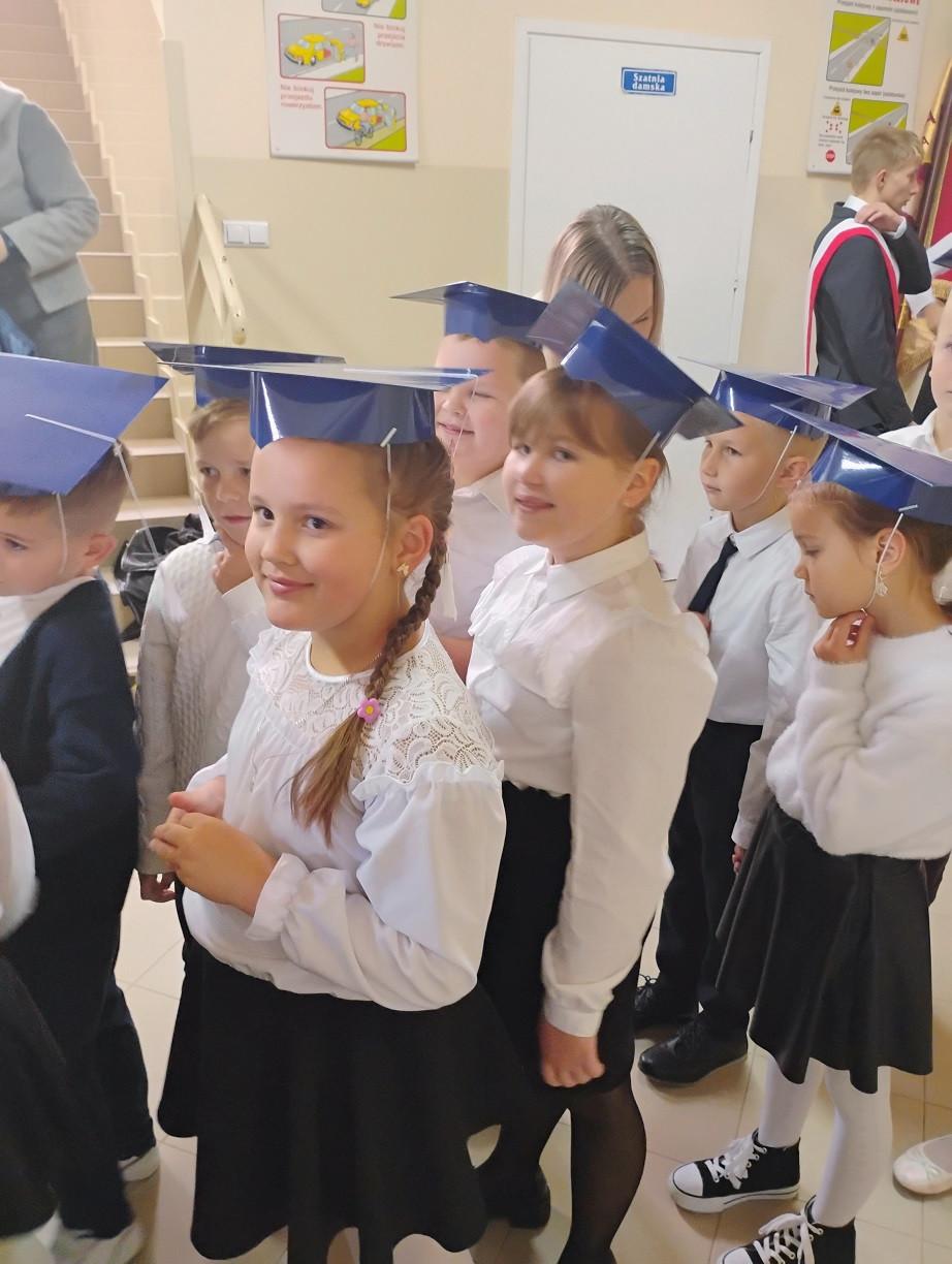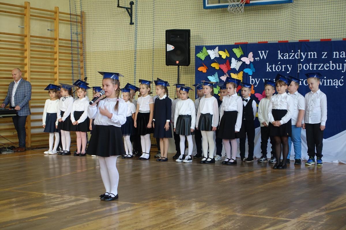 Zanim pierwszoklasiści zostali przyjęci do grona społeczności szkolnej musieli przedstawić to, czego już się w szkole nauczyli. Gotowi, odświętnie ubrani i bardzo przejęci przystąpili do zaprezentowania swoich umiejętności. Rozpoczęto tradycyjnie od zatańczenia Poloneza. Następnie zadaniem uczniów było m.in. zaśpiewanie piosenek, recytacja wierszy oraz umiejętność odpowiedzi na szereg bardzo ważnych pytań, w szczególności zawartych w "Katechizmie polskiego dziecka". Po zakończonej prezentacji nikt nie miał wątpliwości, że wszystkie dzieci wspaniale zdały "egzamin pierwszoklasisty".