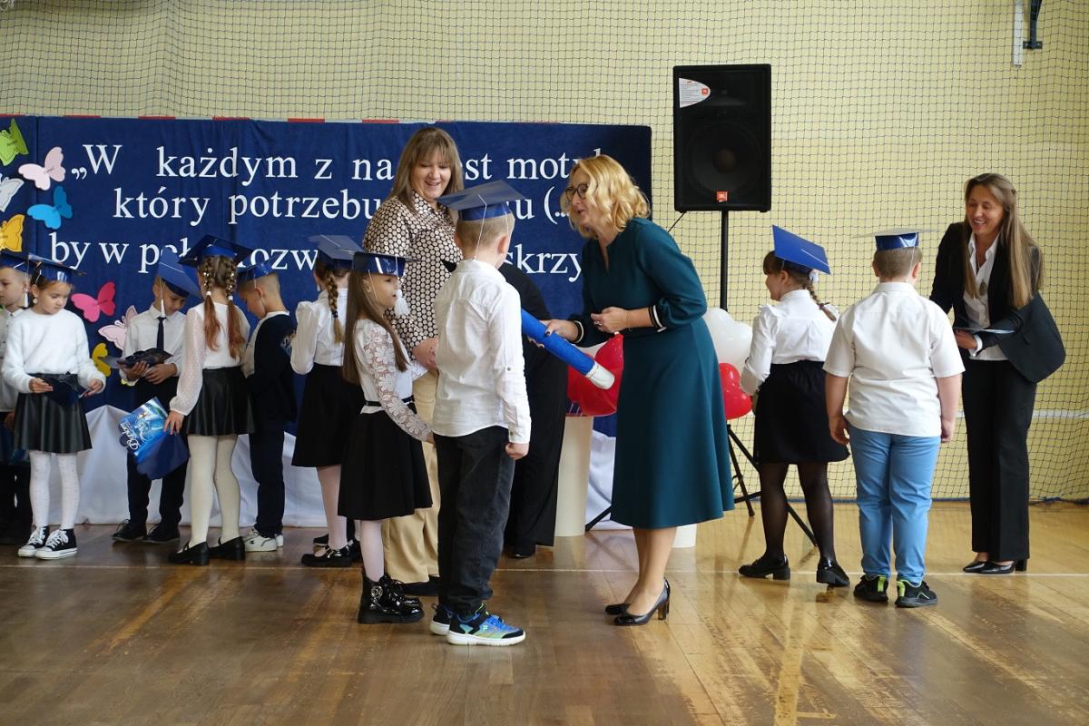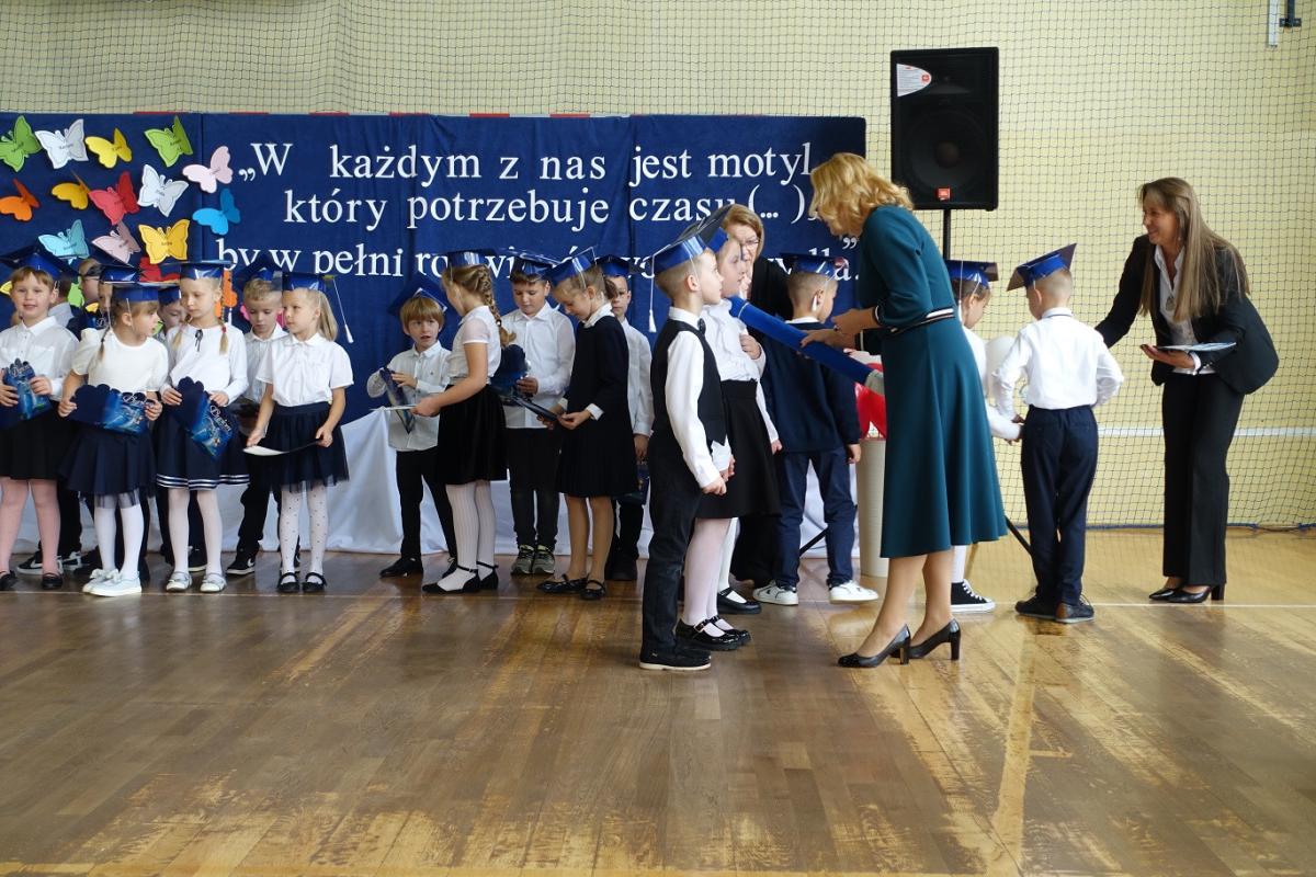 Doniosłym momentem uroczystości było ślubowanie pierwszoklasistów, na sztandar szkoły. Po ślubowaniu nastąpił moment pasowania na ucznia. Aktu tego dokonała pani dyrektor Anna Golonka wraz z panią wicedyrektor - Małgorzatą Jarząb. Tym samym pierwszaki zostały włączone do społeczności uczniowskiej Szkoły Podstawowej im. bł. Kard. Stefana Wyszyńskiego w Przysietnicy. Dowodem tego były dyplomy pasowania na ucznia.