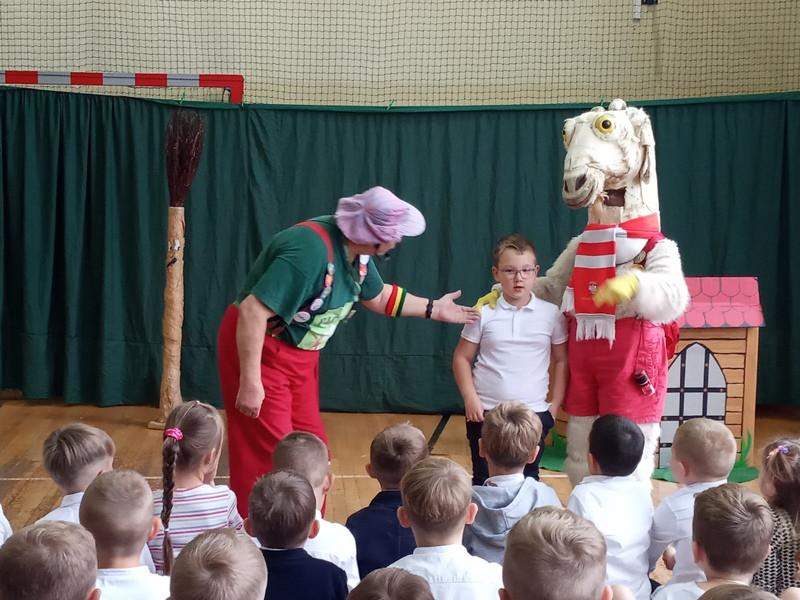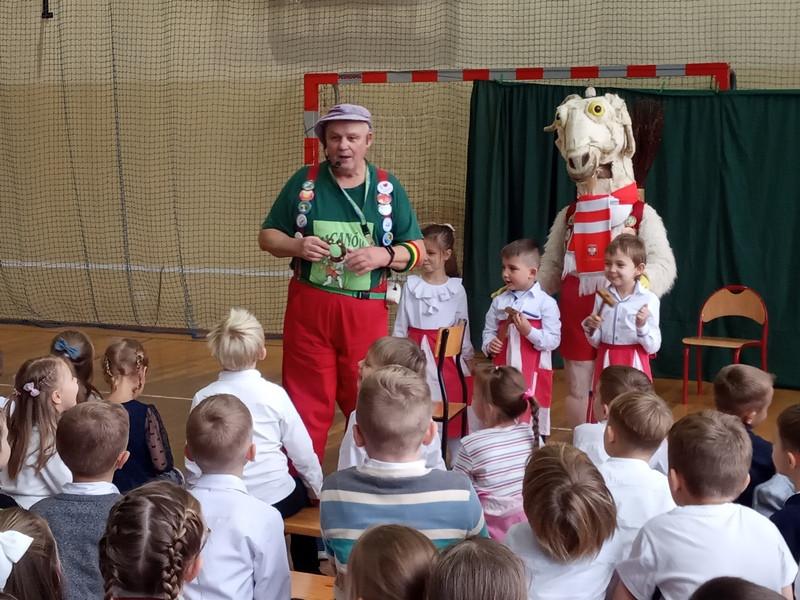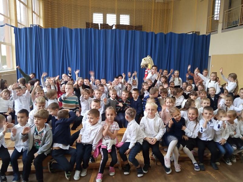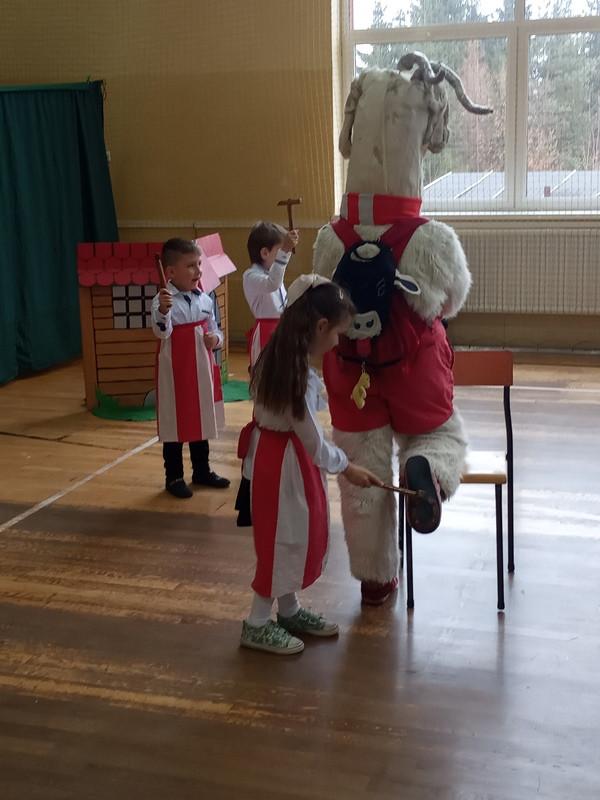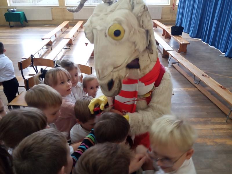 8 listopada dzieci z klas 0-3 wzięły udział w przedstawieniu o przygodach Koziołka Matołka. Po spektaklu obyło się podkuwanie Koziołka Matołka – były młotki, fartuchy i oczywiście podkowy a dzielni kowale musieli przejść obowiązkowy egzamin kowalski. Na zakończenie przeprowadzono krótki quiz, w którym uczniowie przypomnieli sobie przysłowia o kozie oraz tytuły najbardziej znanych książek Kornela Makuszyńskiego. Wszystkie dzieci spisały się na medal i zostały przyjęte do Klubu Koziołka Matołka.