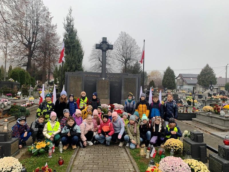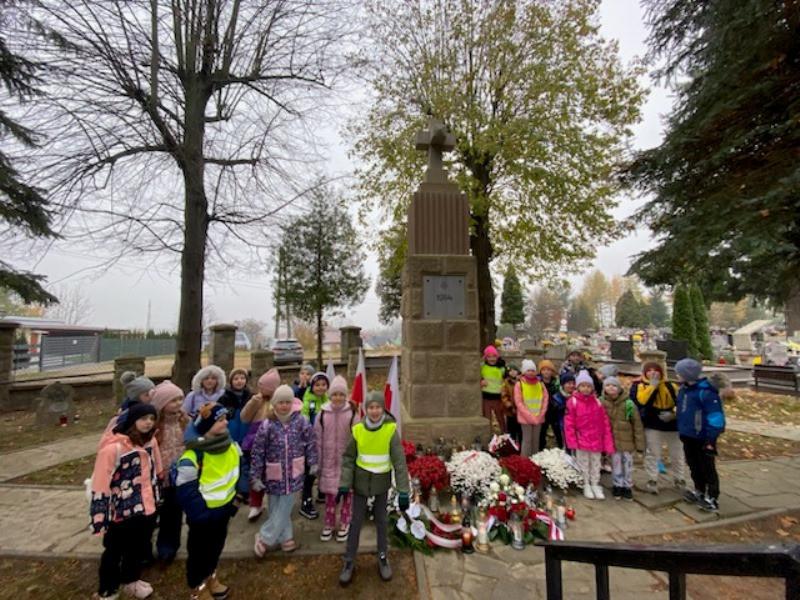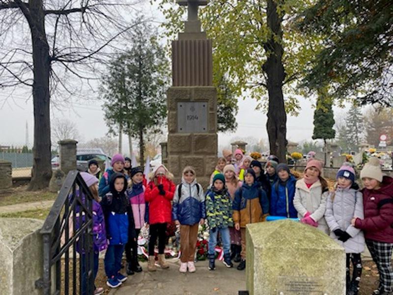 Po przedstawieniu dzieci z klas I-III udały się na cmentarz w Starym Sączu, gdzie zapalono znicze na grobach poległych żołnierzy.