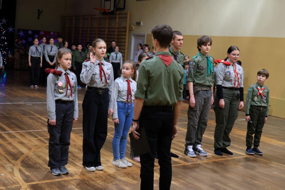 Juz po raz XXXIII w dniach 29 - 30.11.2024r. odbył się Nocny Bieg Mikołajkowy ZHP Hufca Nowy Sącz pod hasłem "Razem możemy zdobyć to co chcemy". Gospodarzami tegorocznej edycji była nasza szkoła i działająca w niej 1 NDWp Orion. W czasie trwania dwudniowej imprezy zuchy i harcerze mieli okazję sprawdzić swoją wiedzę na temat wybranych zawodów za punktach kontrolnych nocnego biegu zadaniowego. Na poszczególnych przystankach na patrole czekały zadania przygotowane przez młodych: leśników, botaników, strażaków, żołnierzy, podróżników, kucharzy, budowlańców, architektów i ratowników medycznych. Po marszu w śniegu i deszczu na uczestników czekał ciepły posiłek. W późnych godzinach nocnych teatr lalek "Bajka " zaprezentował "Opowieść wigilijną", po czym wszyscy otrzymali mikołajkowe upominki. Dla wytrwałych po północy rozpoczęła się zabawa andrzejkowa.