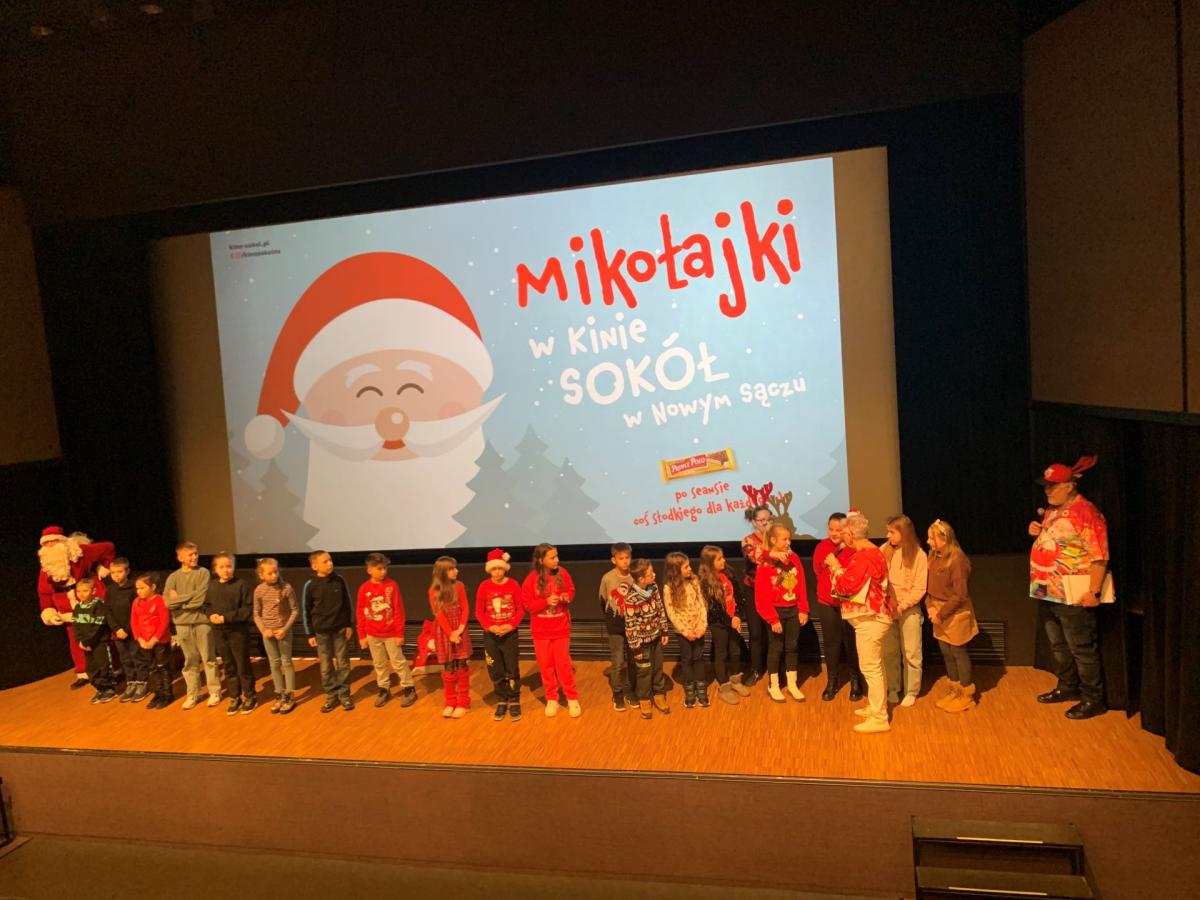 W tym roku, 6 grudnia uczniowie klas trzecich przeżyli moc mikołajkowych atrakcji. Wyjechali do kina Sokół w Nowym Sączu. Na miejscu zgromadzili się uczniowie z różnych szkół, by wspólnie wziąć udział w MIKOŁAJKACH W KINIE SOKÓŁ. Na scenie przywitała ich drużyna Św. Mikołaja. Po krótkiej prezentacji, odbył się quiz z nagrodami. Później dzieci obejrzały wzruszającą opowieść, w którą zabrała ich bohaterka filmu „Vaiana 2”. Po projekcji filmu, każdy uczestnik otrzymał słodki upominek.