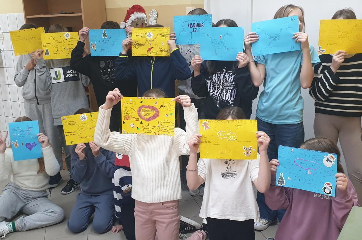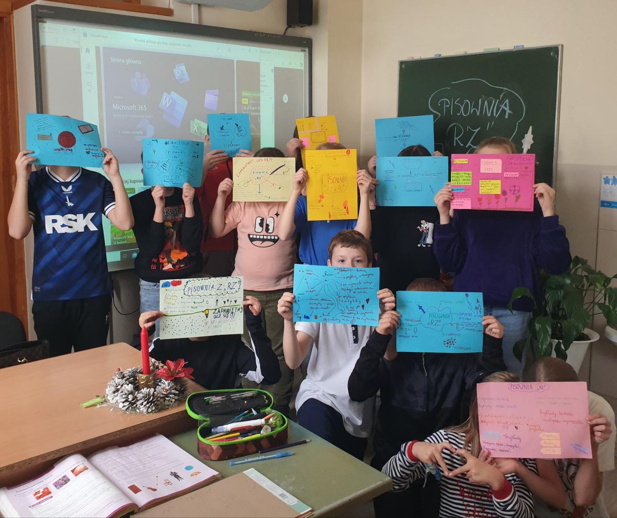 W ramach Ogólnopolskiego Projektu Edukacyjnego „Polak ma Essę! 2”, uczniowie kl. IVa i IVb wzięli udział w niezwykłej lekcji pt. „Sortownia ortograficzna”. Celem zajęć było kreatywne utrwalenie zasad ortograficznych poprzez tworzenie graficznych przedstawień reguł językowych. Efekty pracy uczniów to nie tylko przemyślane i estetyczne kompozycje graficzne, ale również świetna forma nauki przez zabawę. Dzięki połączeniu wizualizacji z teorią, dzieci mogły lepiej zrozumieć i zapamiętać zasady pisowni wyrazów z „rz”, jednocześnie rozwijając swoje zdolności plastyczne i wyobraźnię.