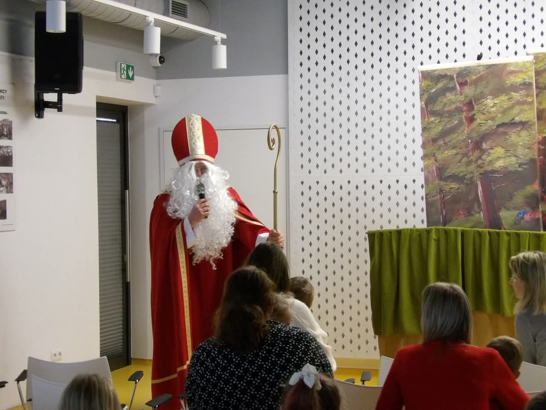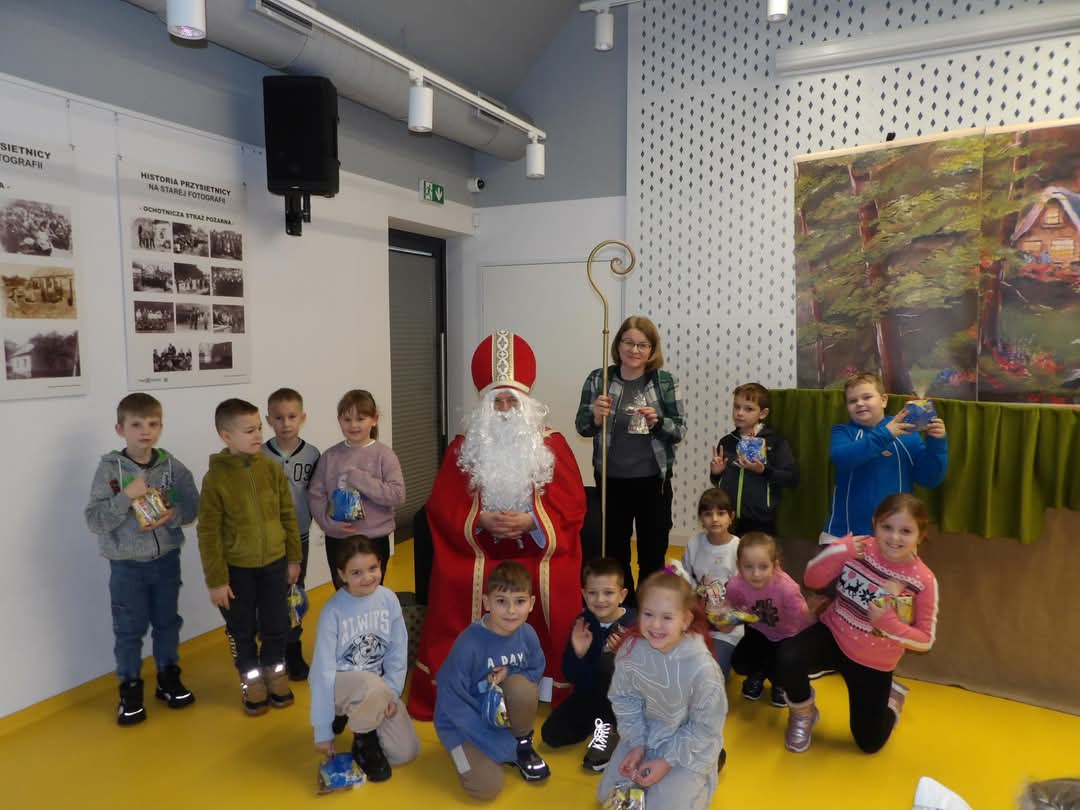 13 grudnia 2024r. oddziały przedszkolne oraz klasy pierwsze z okazji zbliżających się świąt Bożego Narodzenia, zostały zaproszone do Biblioteki Publicznej w Przysietnicy na przedstawienie pt. „Magiczne słowo” w wykonaniu Teatrzyku Kukiełkowego „Bajka”.