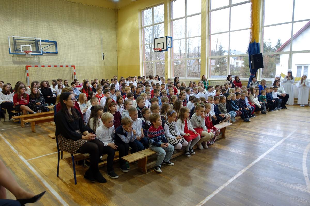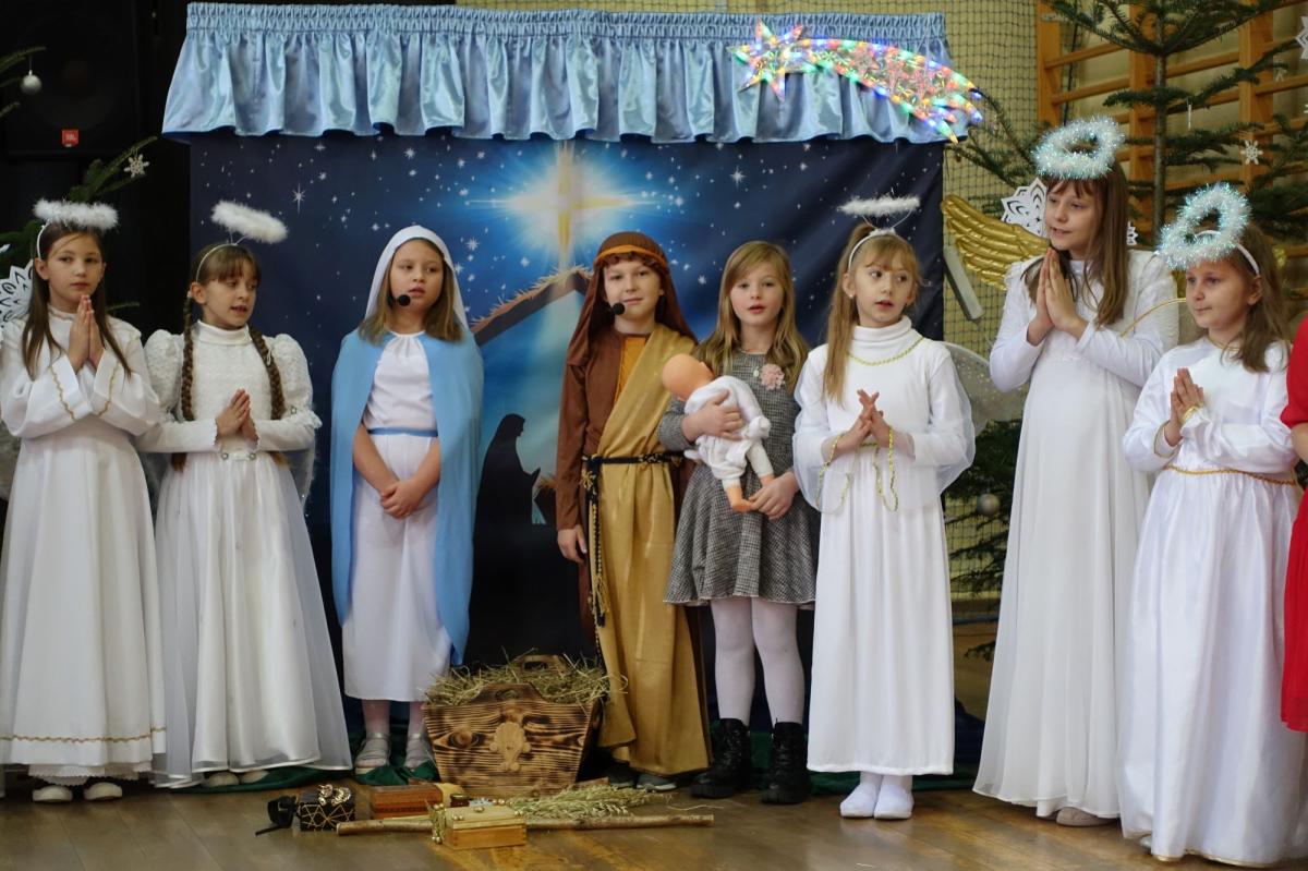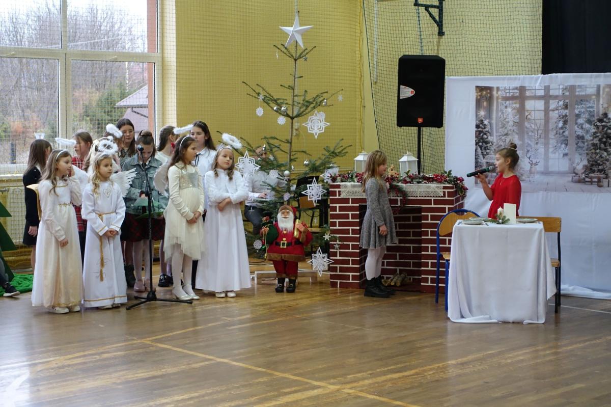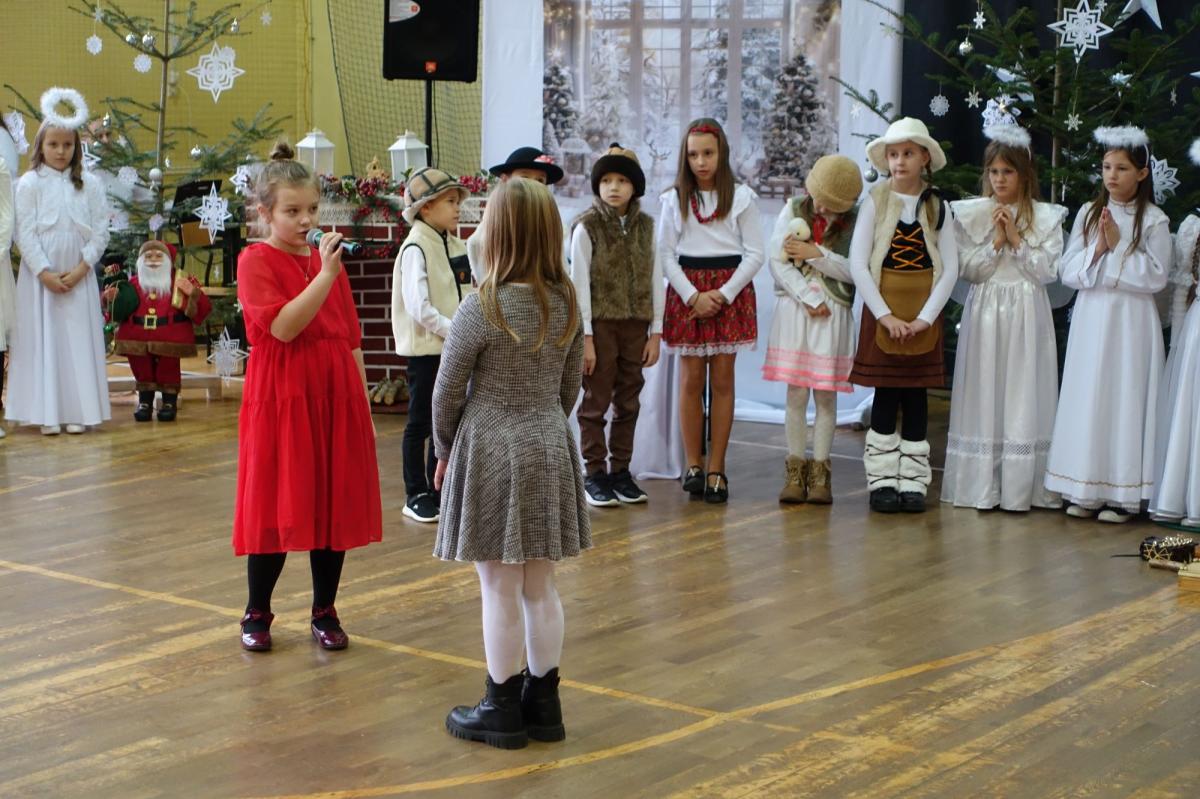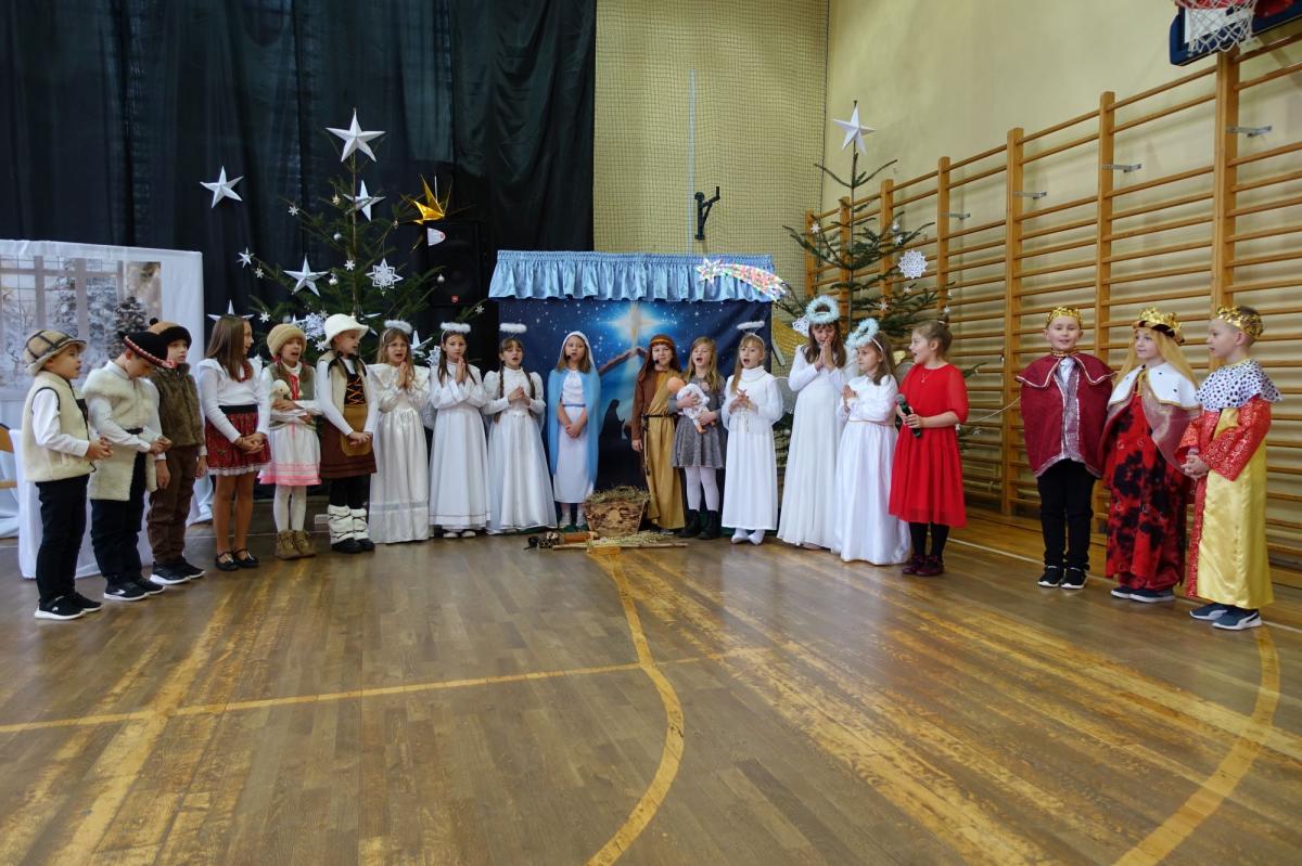 Po wspólnym posiłku społeczność naszej szkoły uczestniczyła w Jasełkach, przygotowanych przez uczniów klasy drugiej pod kierunkiem p. Barbary Stelmach. Wspaniała scenografia, piękne kostiumy oraz poruszające kolędy i pastorałki sprawiły, że wszyscy czuli się częścią tej pięknej opowieści. Uczniowie poprzez udział w tym wydarzeniu mieli szansę na refleksję nad istotą świąt, wartościami takimi jak miłość, pokój i empatia.
