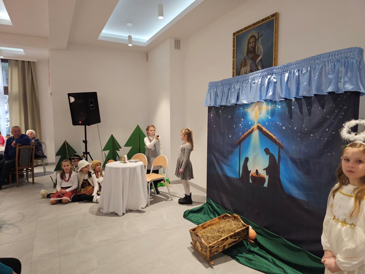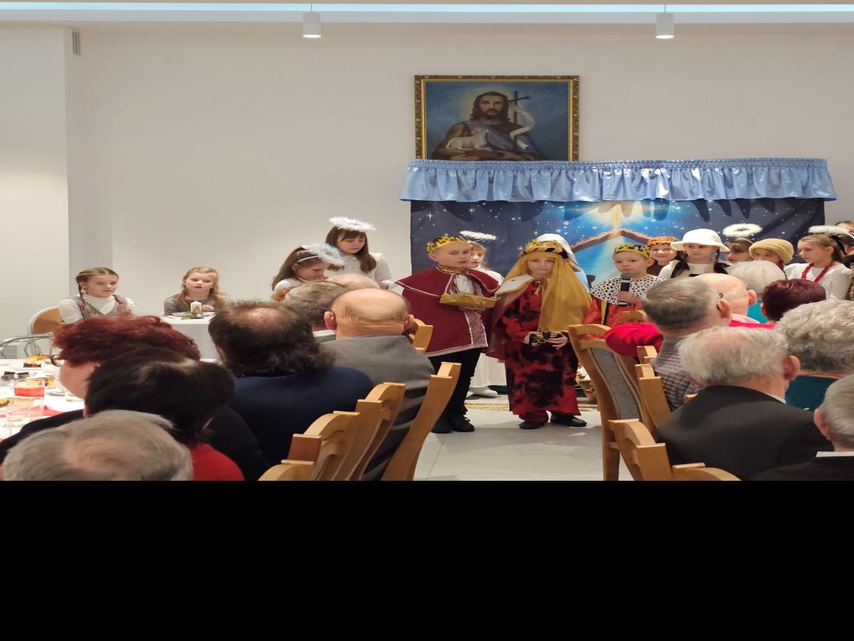 6.01.2024r. uczniowie klasy II pod opieką p. Barbara Stelmach zaprezentowali „Jasełka” na spotkaniu opłatkowym Seniorów zorganizowanym przez Caritas w Domu Parafialnym w Przysietnicy. Następnie tegoroczni laureaci Szkolnego Konkursu Kolęd i Pastorałek zaprezentowali pod kierownictwem p. Krzysztofa Smydy przepiękne, nastrojowe utwory .
