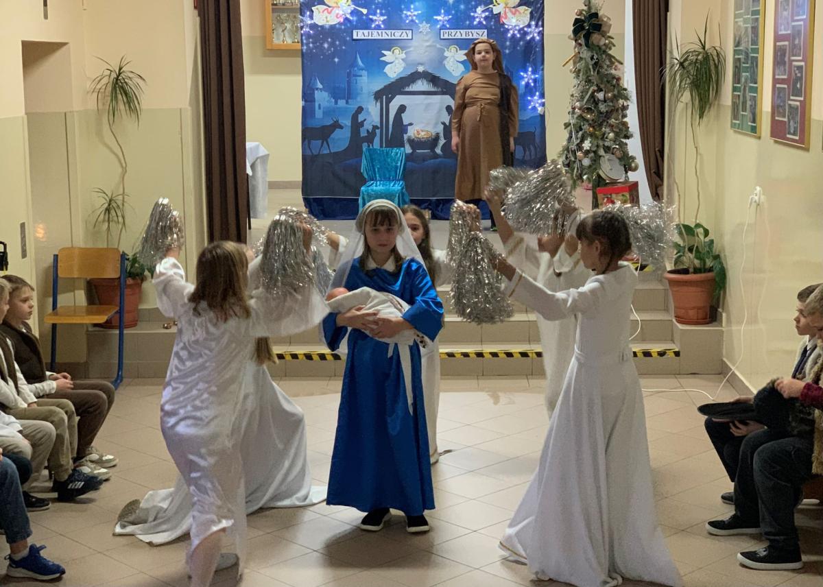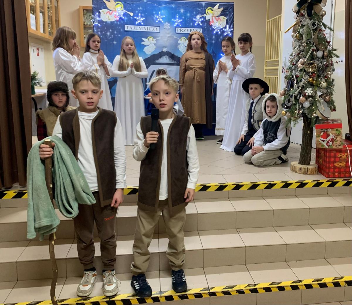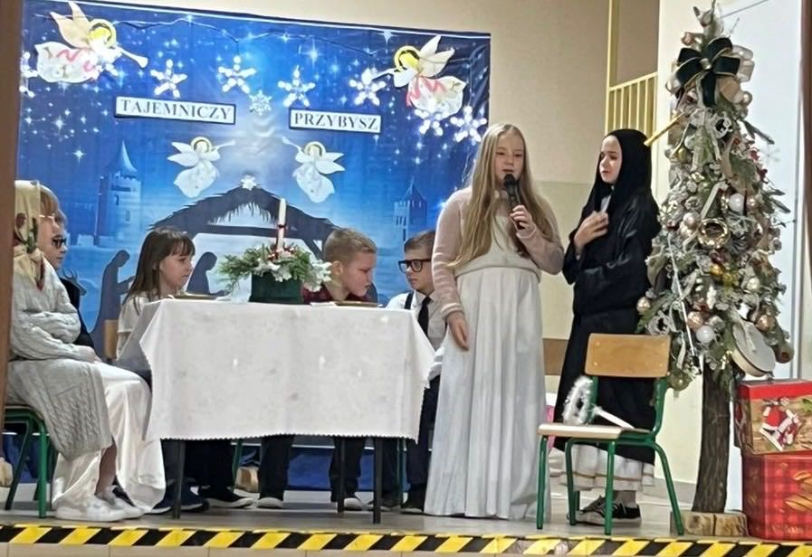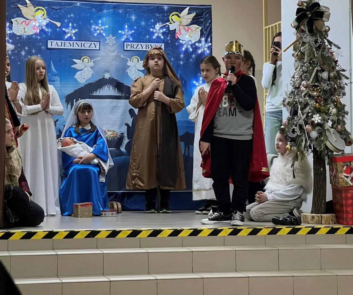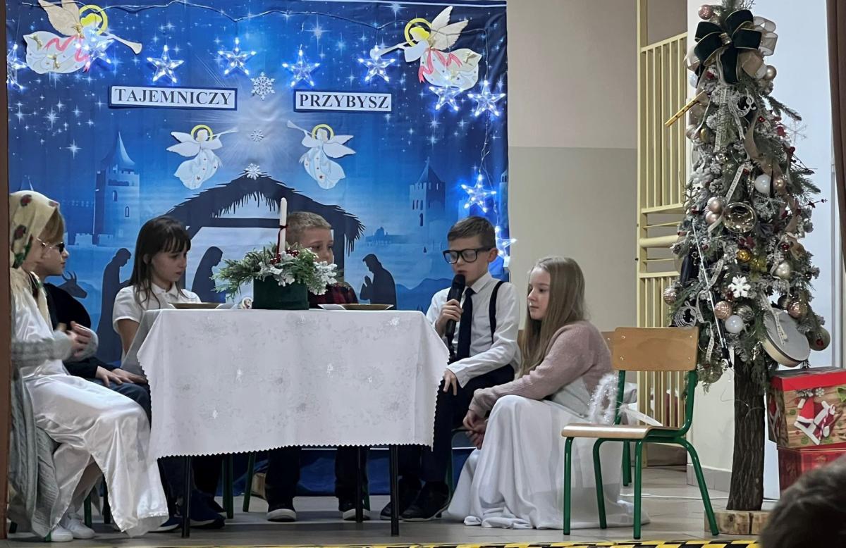 Widowisko jasełkowe to nieodłączny element tradycji bożonarodzeniowej.Uczniowie klasy 3a pod kierunkiem wychowawczyni Aliny Citak przygotowali świąteczne przedstawienie pt.: „Tajemniczy Przybysz”. Na premierę uczniowie zaprosili rodziców, dziadków, członków rodziny i znajomych. Przed zgromadzoną publicznością w blasku reflektorów i świątecznej scenografii młodzi artyści wzorowo odegrali przygotowane role. Wcielili się w postaci: rodziny przy świątecznym stole, choinki, bombki, Świętej Rodziny, aniołów, posłańca, pastuszków, owieczki, króli. Nie zabrakło pięknie zaśpiewanych piosenek świątecznych. Taniec aniołów wzruszył gości, a melodia i elementy akustyczne koiły zmysły.