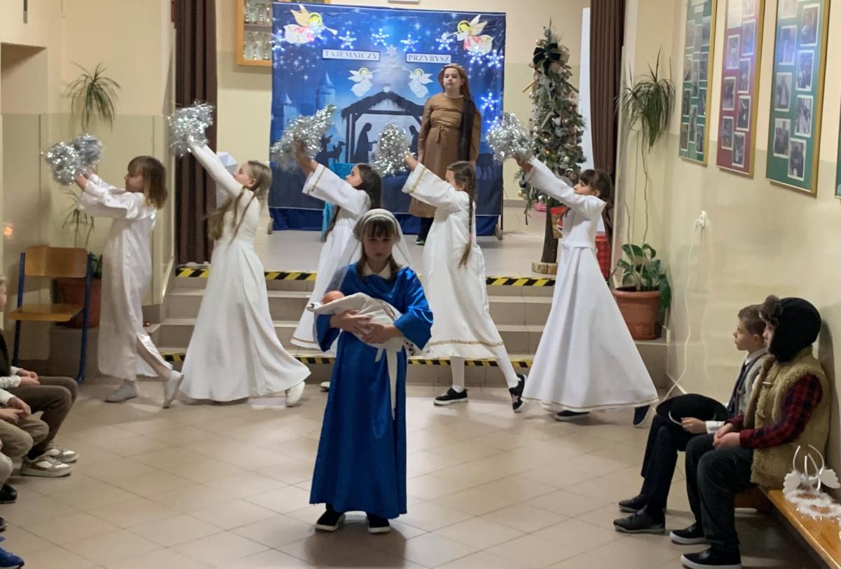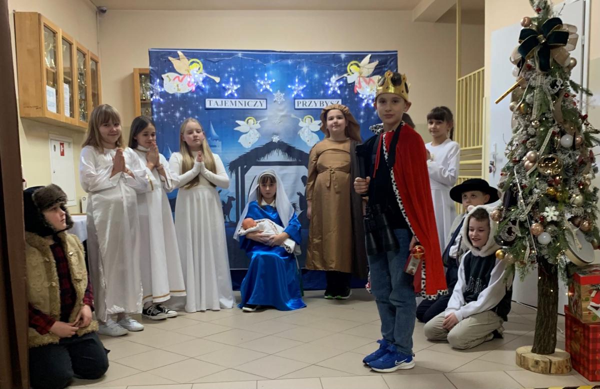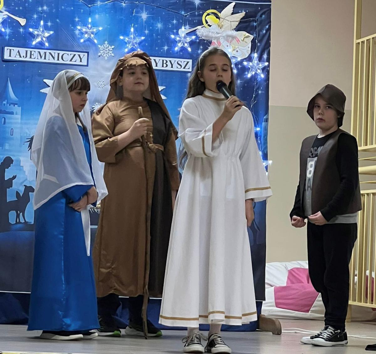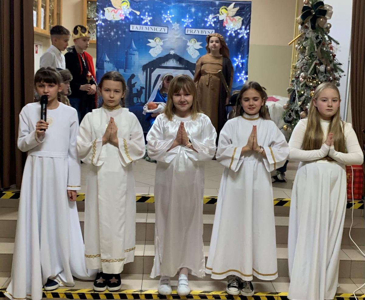 Widowisko jasełkowe to nieodłączny element tradycji bożonarodzeniowej.Uczniowie klasy 3a pod kierunkiem wychowawczyni Aliny Citak przygotowali świąteczne przedstawienie pt.: „Tajemniczy Przybysz”. Na premierę uczniowie zaprosili rodziców, dziadków, członków rodziny i znajomych. Przed zgromadzoną publicznością w blasku reflektorów i świątecznej scenografii młodzi artyści wzorowo odegrali przygotowane role. Wcielili się w postaci: rodziny przy świątecznym stole, choinki, bombki, Świętej Rodziny, aniołów, posłańca, pastuszków, owieczki, króli. Nie zabrakło pięknie zaśpiewanych piosenek świątecznych. Taniec aniołów wzruszył gości, a melodia i elementy akustyczne koiły zmysły.