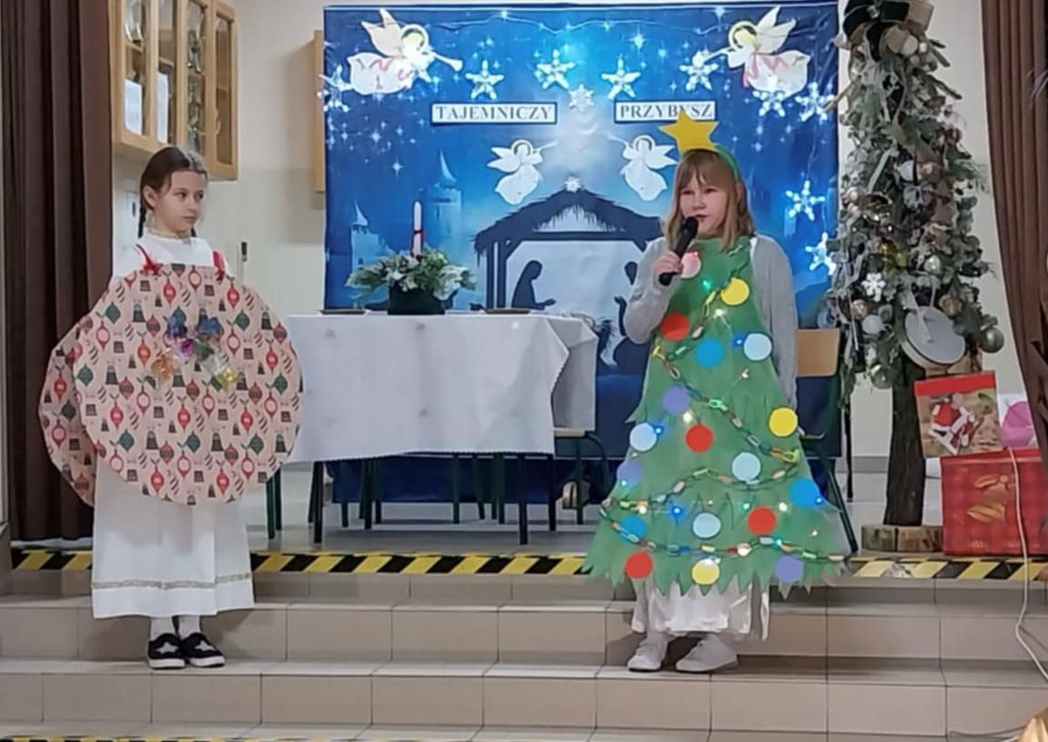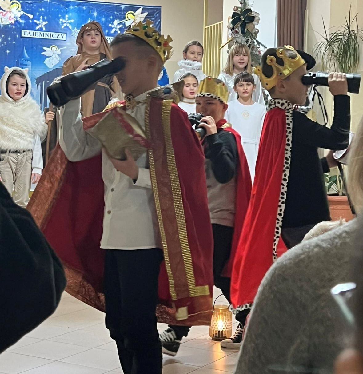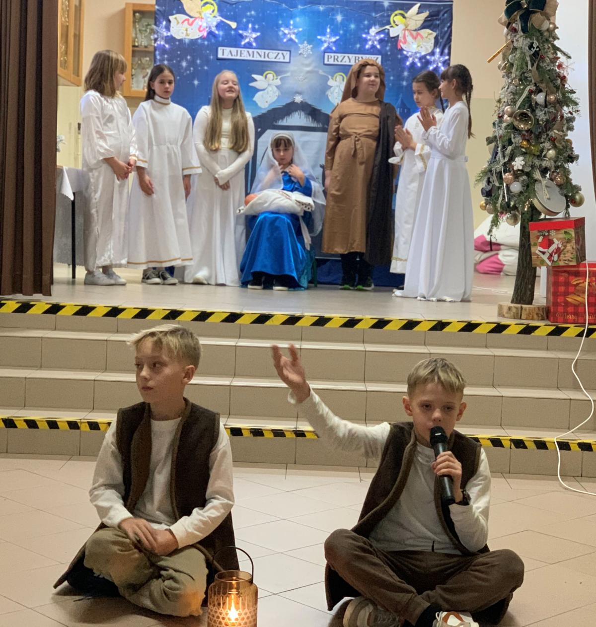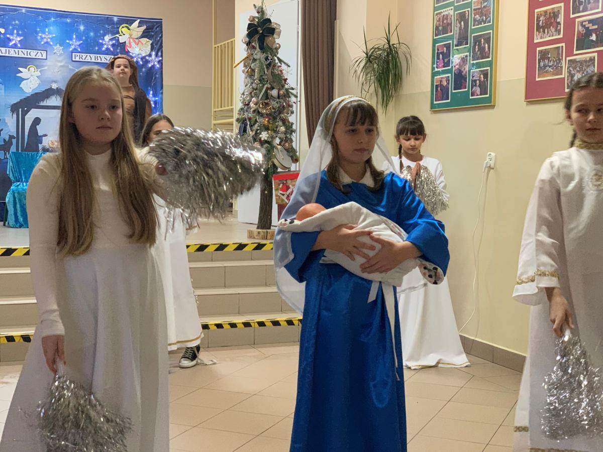 Widowisko jasełkowe to nieodłączny element tradycji bożonarodzeniowej.Uczniowie klasy 3a pod kierunkiem wychowawczyni Aliny Citak przygotowali świąteczne przedstawienie pt.: „Tajemniczy Przybysz”. Na premierę uczniowie zaprosili rodziców, dziadków, członków rodziny i znajomych. Przed zgromadzoną publicznością w blasku reflektorów i świątecznej scenografii młodzi artyści wzorowo odegrali przygotowane role. Wcielili się w postaci: rodziny przy świątecznym stole, choinki, bombki, Świętej Rodziny, aniołów, posłańca, pastuszków, owieczki, króli. Nie zabrakło pięknie zaśpiewanych piosenek świątecznych. Taniec aniołów wzruszył gości, a melodia i elementy akustyczne koiły zmysły.