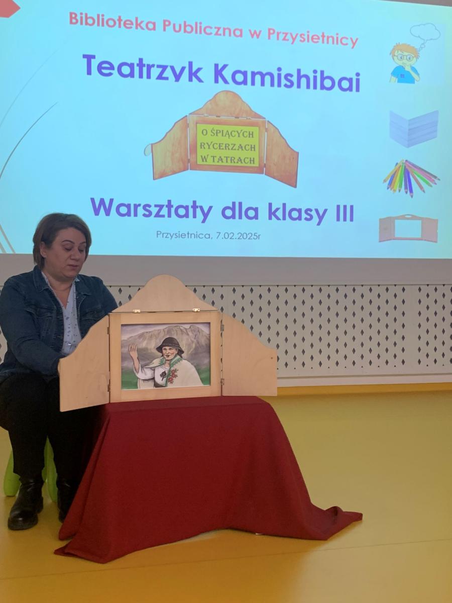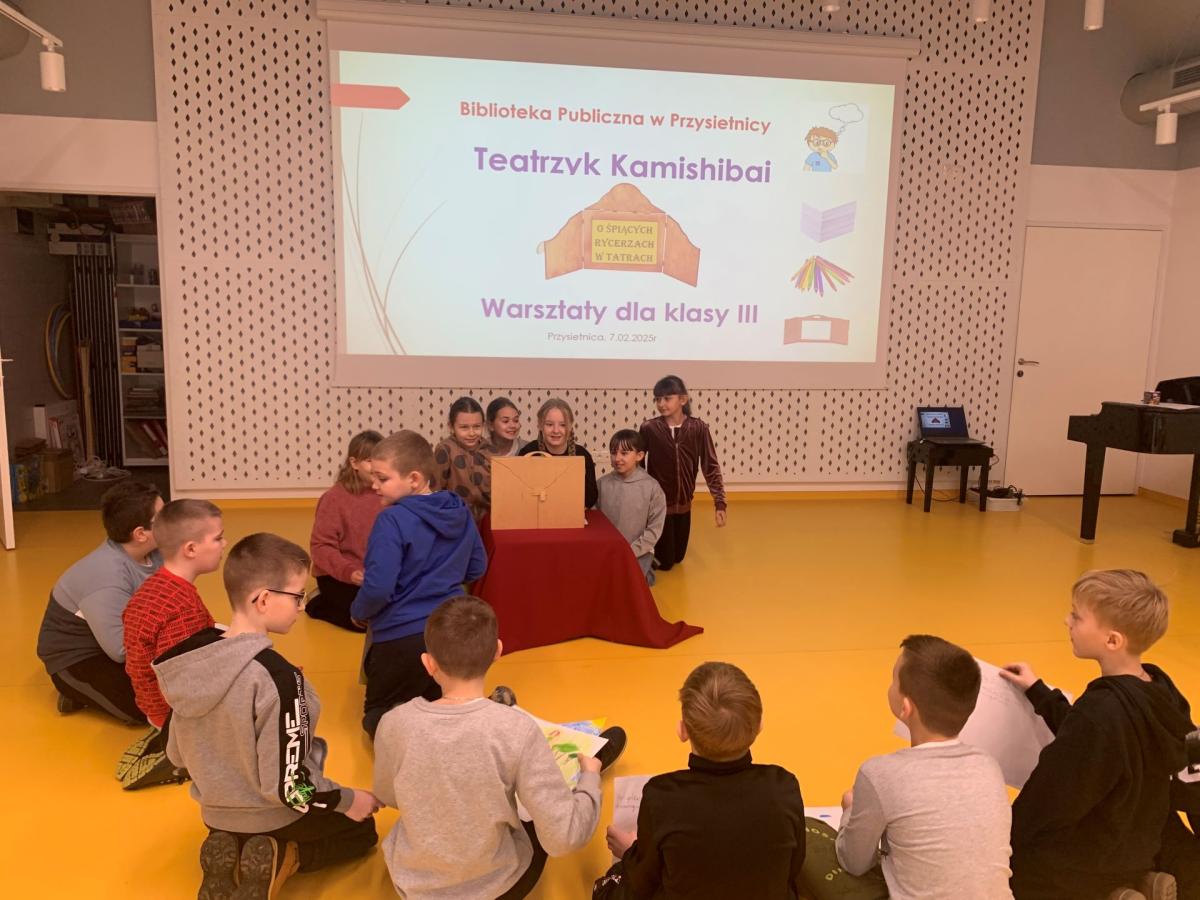 W piątek 7.02.2025 r. w Bibliotece Publicznej odbyły się warsztaty teatralne dla uczniów klasy III a, które miały na celu zapoznanie dzieci z japońską sztuką opowiadania historii za pomocą kamishibai.